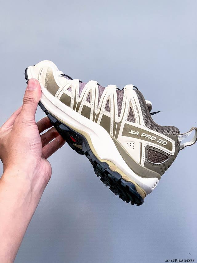 Salomon Xa pro 3D Adv Outdoor Trail Running Shoes. The upper features Sensifit technology for a full-body fit and wrap around the foot. The heel and outsole traction design provide strong grip, making it more suitable for rough terrain. Its 3D Advanced Chassis chassis material is lightweight with maximized lug design for enhanced stability and protection. The outsole uses Contagrip high-abrasion material in high-wear areas to withstand the challenges of long-distance running on hard urban surfaces. (DDD 1125101X38)