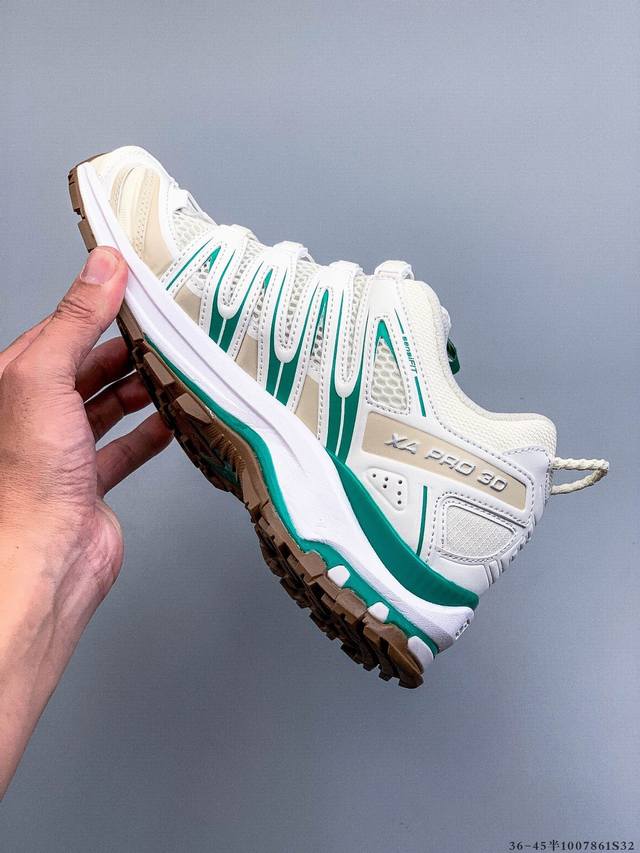 Salomon Xa Pro 3D Adv Outdoor Trail Running Shoes. The upper features Sensifit technology for a full-body fit, while the heel and outsole traction design provide excellent grip, making them ideal for rough terrain. The lightweight 3D Advanced Chassis chassis material and maximized lug design offer enhanced stability and protection. The outsole utilizes Contagrip high-abrasion material in high-wear areas to withstand the challenges of long-distance running on hard urban surfaces. (