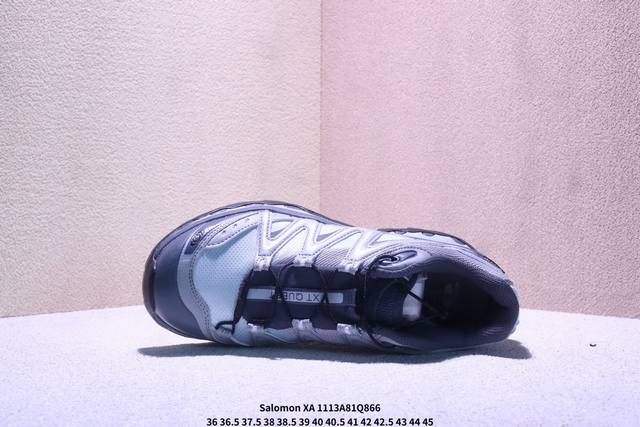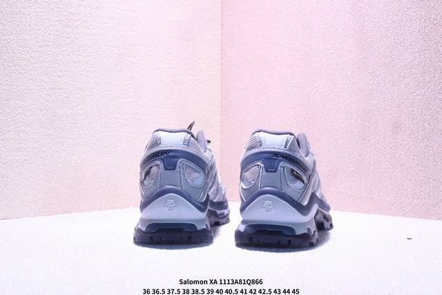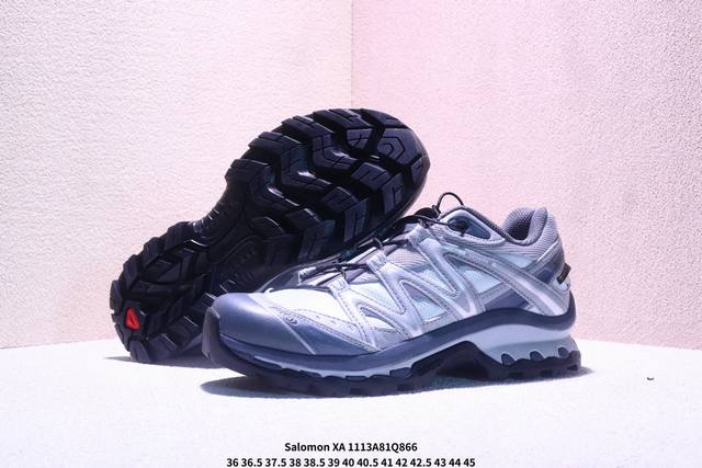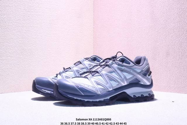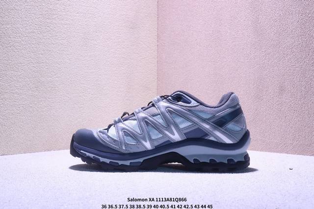 Salomon Xa pro 3D Suede outdoor trail running shoes feature a Sensifit fit upper that provides a full-body wrap around the foot, a traction design in the heel and sole for superior grip, making them ideal for rough terrain. The lightweight 3D Advanced Chassis chassis material and maximized lug design offer enhanced stability and protection. The outsole utilizes Contagrip high-abrasion material in high-wear areas to withstand the challenges of long-distance running on hard urban surfaces. DDD Xm1113Q866 DDD