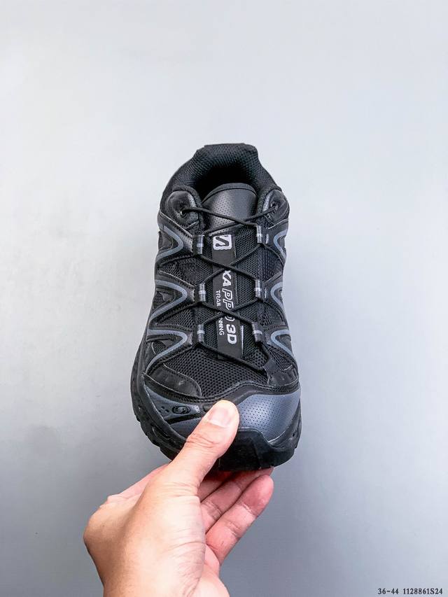Salomon Xa pro XT-6 Expanse Outdoor Trail Running Shoes. The upper features Sensifit technology for a full-body fit and wrap around the foot. The heel and outsole traction design provide strong grip, making it more suitable for rough terrain. Its 3D Advanced Chassis chassis material is lightweight with maximized lug design for enhanced stability and protection. The outsole uses Contagrip high-abrasion material in high-wear areas to withstand the challenges of long-distance running on hard urban surfaces. (DDD 1128861S24 DDD)