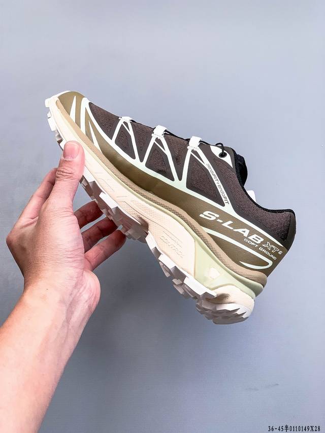 Salomon Xa Pro Xt-6 Expanse Outdoor Trail Running Shoes. The upper features Sensifit technology for a full-body fit, and the heel and outsole traction design provide excellent grip, making them ideal for rough terrain. The lightweight 3D Advanced Chassis chassis material and maximized lug design offer enhanced stability and protection. The outsole utilizes Contagrip high-abrasion material in high-wear areas to withstand the challenges of long-distance running on hard urban surfaces. (DDD 0110149X28 DDD)