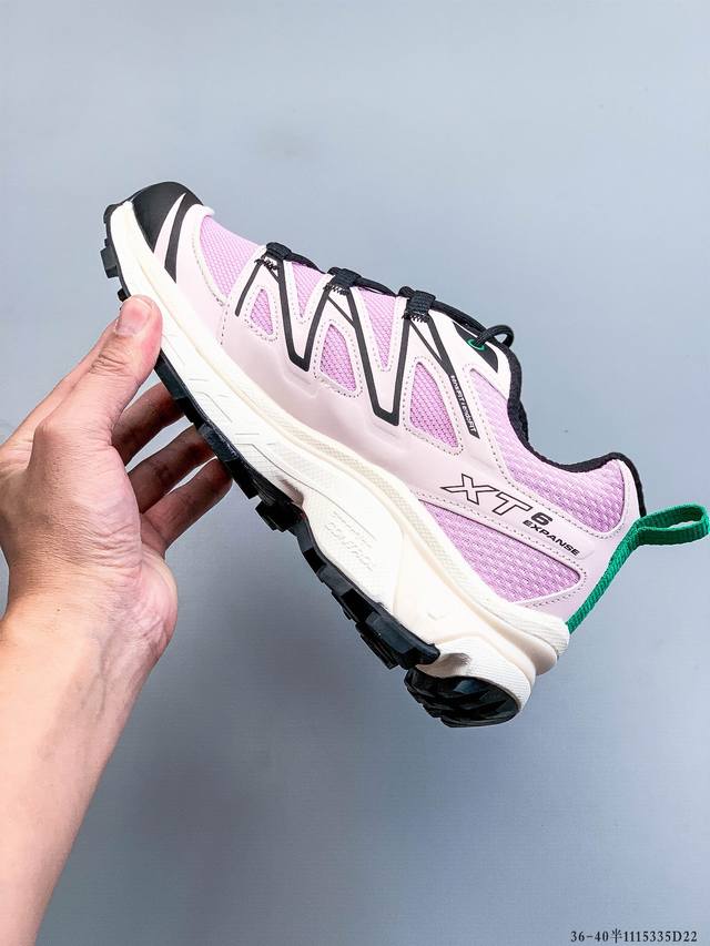 Salomon Xa pro XT-6 Expanse Outdoor Trail Running Shoes. The upper features Sensifit technology for a full-body fit, and the heel and outsole traction design provide excellent grip, making them ideal for rough terrain. The lightweight 3D Advanced Chassis chassis material and maximized lug design offer enhanced stability and protection. The outsole utilizes Contagrip high-abrasion material in high-wear areas to withstand the challenges of long-distance running on hard urban surfaces. (DDD 1115335D22 DDD)