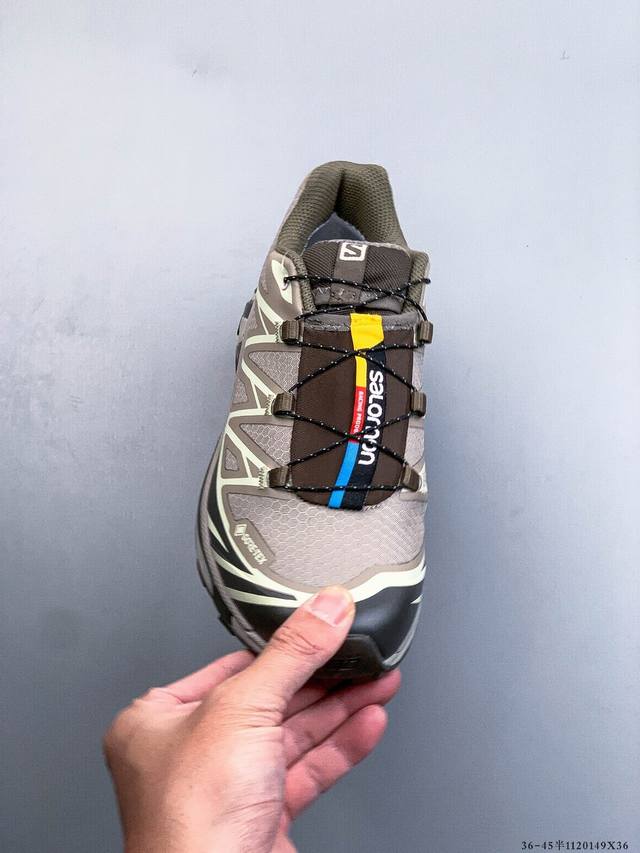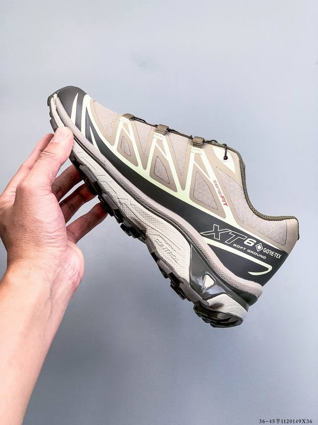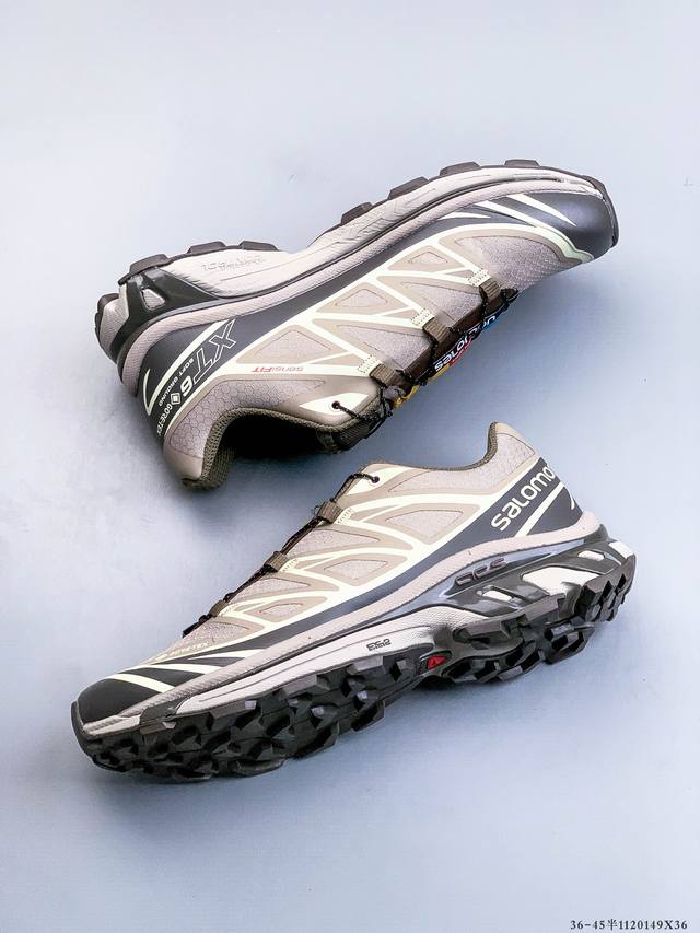 Salomon Xa pro XT-6 Expanse Outdoor Trail Running Shoes. The upper features Sensifit technology for a full-body fit and wrap around the foot. The heel and outsole traction design provide strong grip, making it more suitable for rough terrain. Its 3D Advanced Chassis chassis material is lightweight with maximized lug design for enhanced stability and protection. The outsole uses Contagrip high-abrasion material in high-wear areas to withstand the challenges of long-distance running on hard urban surfaces. (DDD 1120149X36 DDD)