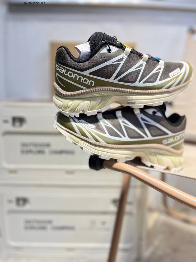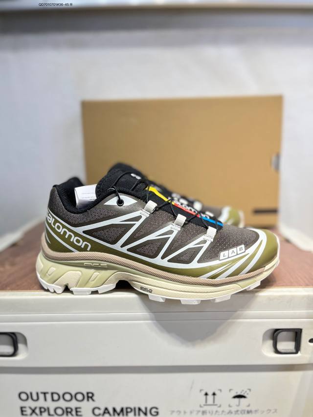 Salomon XT-6 GTX outdoor trail running shoes feature a Sensifit fit upper for a comprehensive foot wrap, and a traction design in the heel and sole for superior grip, making them ideal for rough terrain. The lightweight 3D Advanced Chassis chassis material and maximized lug design offer enhanced stability and protection. The outsole utilizes Contagrip high-abrasion material in high-wear areas to withstand the challenges of long-distance running on hard urban surfaces. 473058 Qd7010701#36-45 half DDD