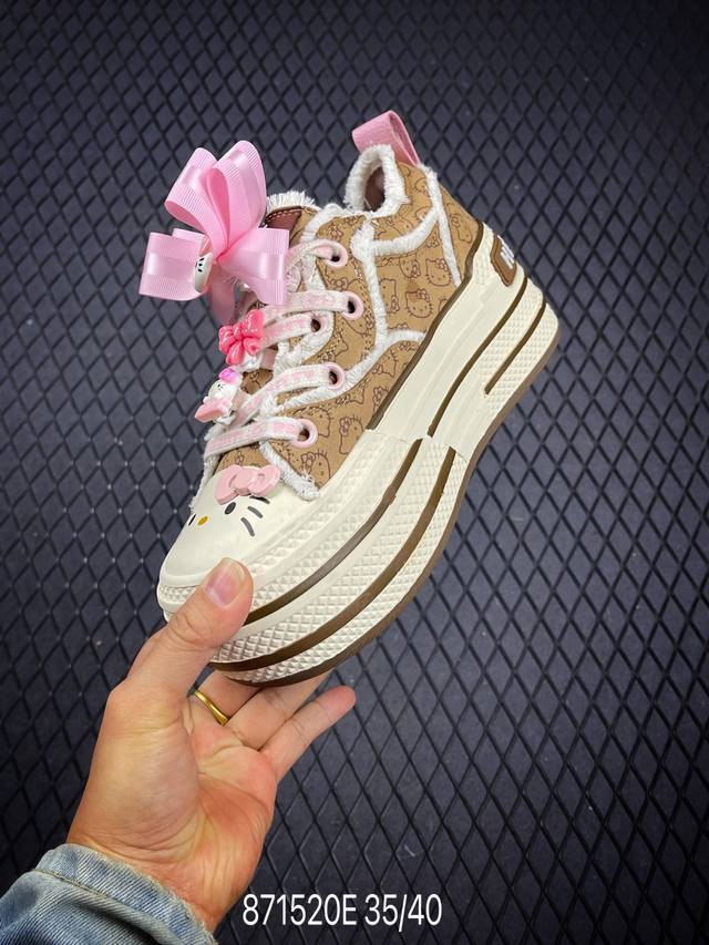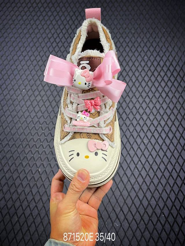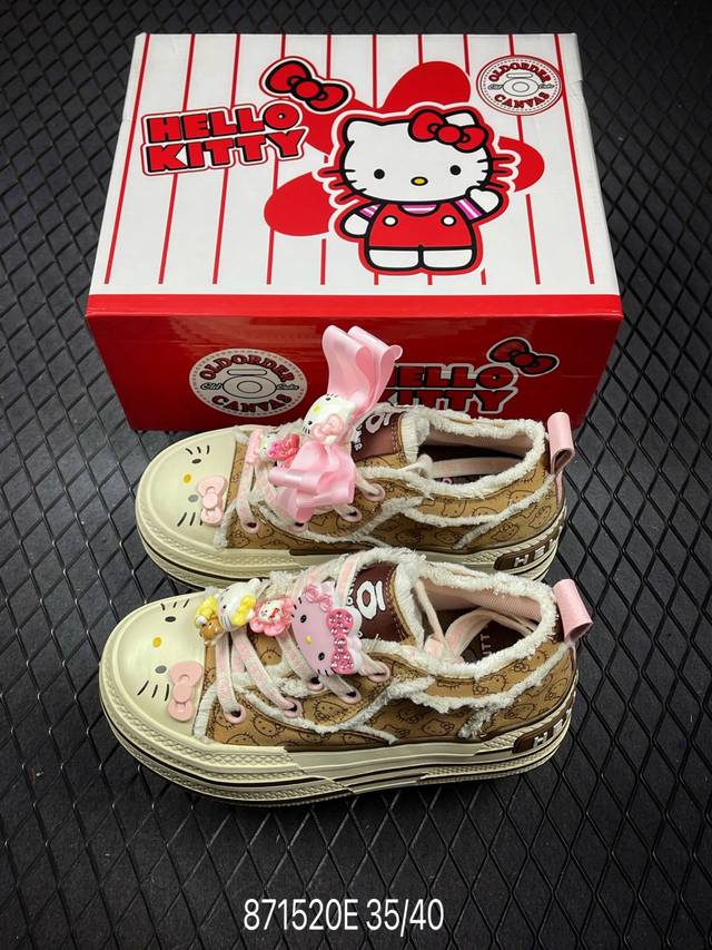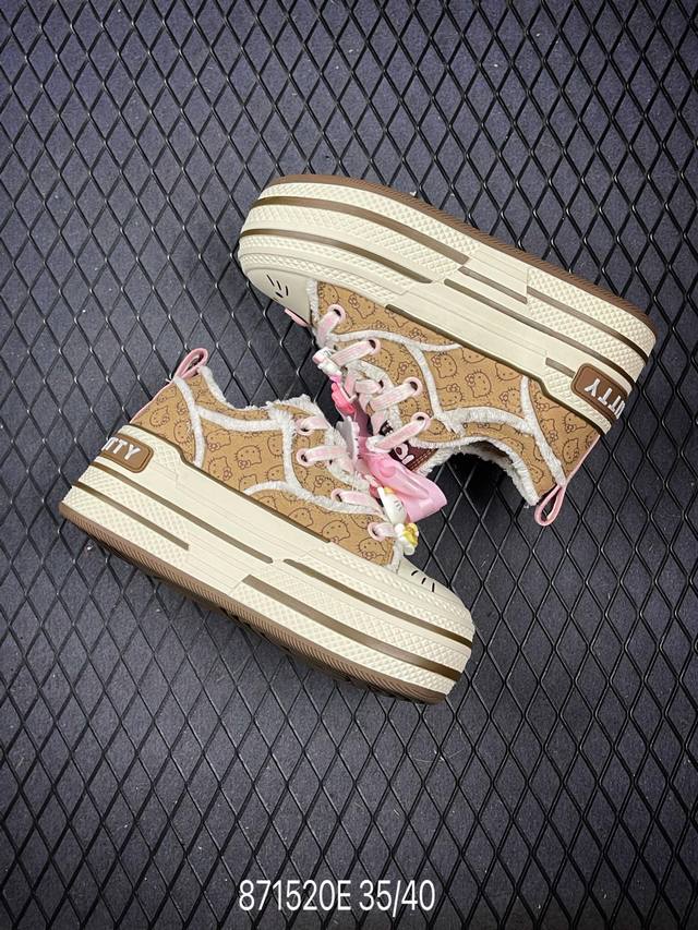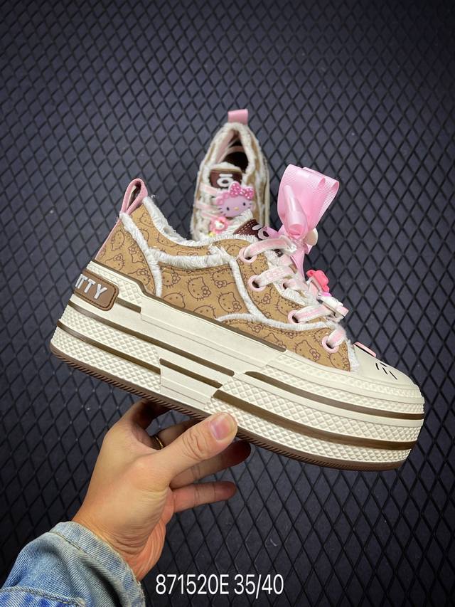 Sanrio X Old Order Limited Edition Hello Kitty Light Blue 6.5cm Thick-soled Height-Increasing Canvas Shoes Macaron
