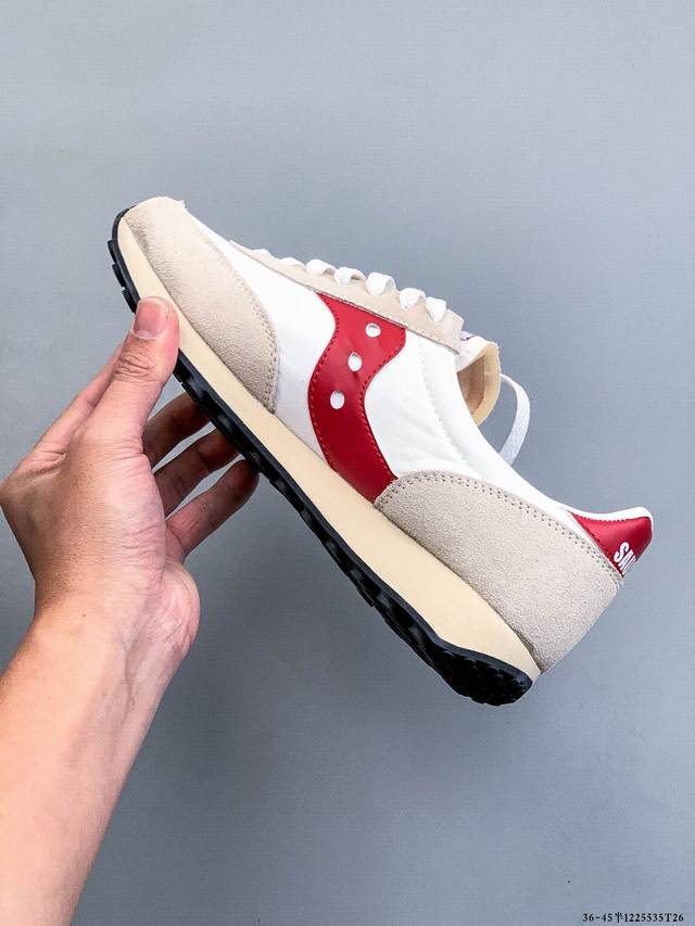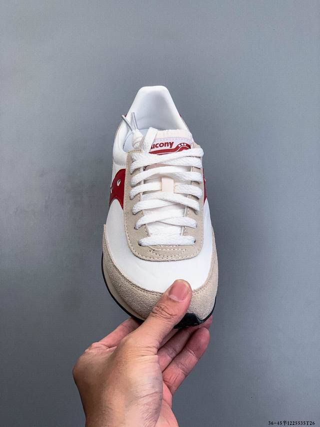 Saucony, a century-old professional running brand, has chosen the Trainer 1980 model from the 1980s as its starting point, bringing back the aesthetic appeal and superior running feel of the 80s. The Trainer 80 series aims to blend retro elements with modern expression through the flexible use of material splicing and color combinations, giving the classic shoe a more diverse inspiration and new ideas. The Saucony Trainer 80 series retains the classic silhouette design and continues the multi-material splicing feature, restoring the retro aesthetics of the American-made era. The upper uses a combination of pleated nylon fabric and suede, ensuring good breathability while creating a visual sense of layering; the slender shoe body, combined with the application of arch support, satisfies the needs of a slim design and foot fit; the natural rubber outsole and EVA thickened midsole material enhance stability and wear resistance, promoting comfortable running.