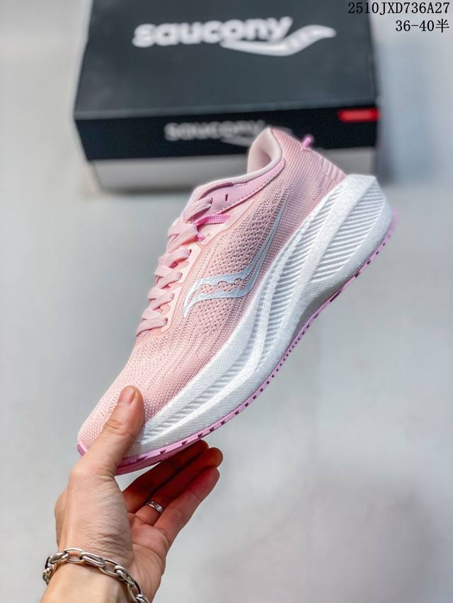 Saucony Triumph 22 Unisex Running Shoes with Strong Cushioning, Lightweight, Suitable for Men and Women, Breathable for Summer Sports. Saucony is a professional running shoe brand from the United States, founded in 1898. Saucony's product line is currently divided into two main categories: professional sports series and retro casual series, providing professional, comfortable, and safe running products for professional runners and running enthusiasts. This Triumph 22 running shoe is positioned as a flagship cushioned running shoe. Its performance has been upgraded compared to previous generations: the upper uses a newly upgraded ergonomic mesh design, conforming to the foot for better breathability. The midsole uses the latest Pwrrun+ material, combined with a Pwrrun+ insole, significantly thickening the midsole, and providing further cushioning and rebound performance with a 10mm incline difference. The insole uses the Formfit dynamic adaptation system, dynamically conforming to the foot shape, improving support and comfort, and providing a superior dynamic feedback experience. The XT-900 rubber outsole provides good grip and strong abrasion resistance. Product Code: S10759-203 Sizes: 36-45 (including half sizes) Code: Hjgt1026Zvl 10Jxd736A27