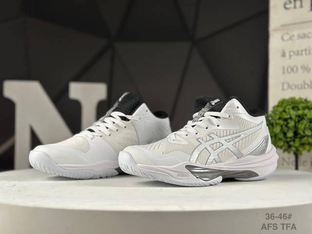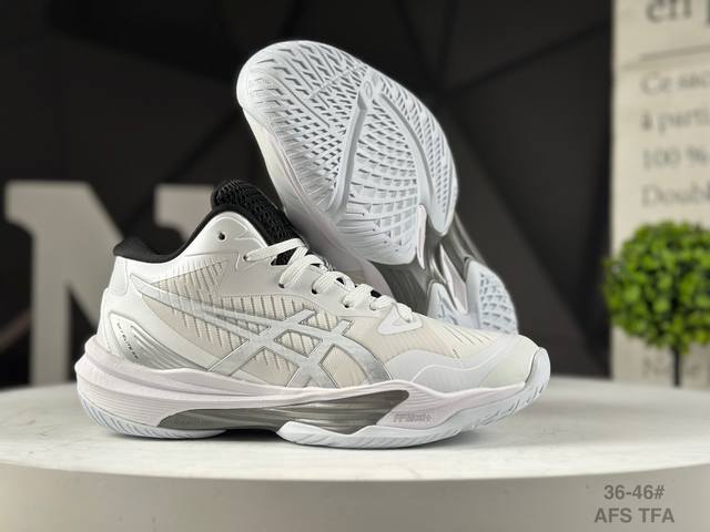 Sky Elite Ff 3 Comfortable and Versatile Mid-Top Volleyball Training Shoes for Men and Women, Silver. These high-performance shoes are designed specifically for volleyball players. The midsole features ASICS' exclusive Ff Blast+ foam material, which not only enhances rebound performance but also creates a softer ground contact. This material provides ample cushioning while helping athletes more effectively utilize ground reaction forces, enhancing their jumping ability. To enhance stability during play, the ASICS Sky Elite Ff 3 volleyball shoe features a built-in giant resin support plate called Risetruss. This design prevents the foot from twisting during quick movements or jumps, allowing athletes to confidently navigate a variety of movements. The sole is constructed from durable rubber, offering excellent wear resistance and grip. Whether playing on indoor wooden floors or outdoor courts, the ASICS Sky Elite Ff 3 volleyball shoe provides stable support and grip. The upper material is carefully selected to ensure both sufficient strength and excellent breathability, ensuring athletes' feet remain dry and comfortable throughout their play. The Asics Sky Elite Ff 3 volleyball shoe has become a high-performance sports shoe favored by volleyball players due to its outstanding technological highlights, design features, and applicable scenarios and crowds. Item No.: 1051A084-105 Afs