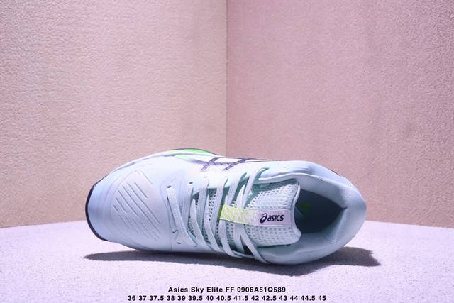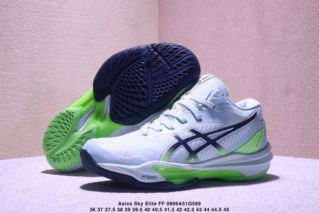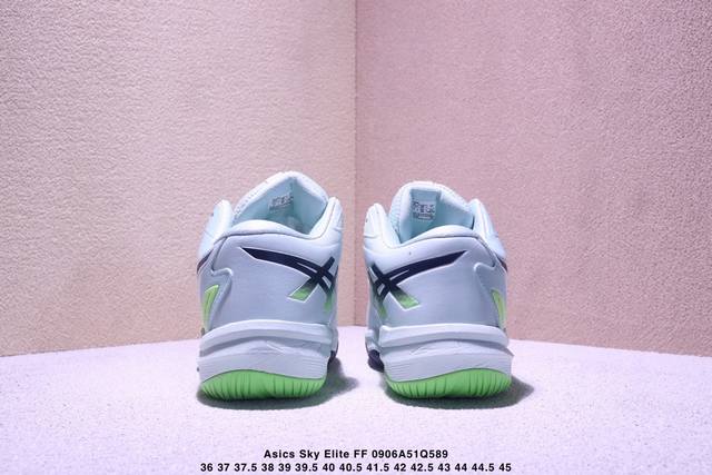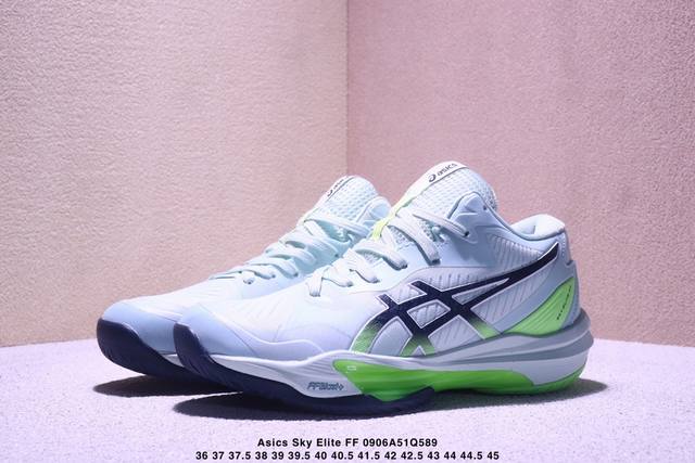 Sky Elite Ff 3 Comfortable and Versatile Mid-Top Volleyball Training Shoes for Men and Women, Silver. These high-performance shoes are designed specifically for volleyball players. The midsole features ASICS' exclusive Ff Blast+ foam material, which not only enhances rebound performance but also creates a softer ground contact. This material provides ample cushioning while helping athletes more effectively utilize ground reaction forces, enhancing their jumping ability. To enhance stability during play, the ASICS Sky Elite Ff 3 volleyball shoe features a built-in giant resin support plate called Risetruss. This design prevents the foot from twisting during quick movements or jumps, allowing athletes to confidently navigate a variety of movements. The sole is constructed from durable rubber, offering excellent abrasion resistance and grip. Whether playing indoors on wooden floors or outdoors, the ASICS Sky Elite Ff 3 volleyball shoe provides stable support and grip. The upper material is carefully selected to ensure both strength and breathability, ensuring athletes' feet remain dry and comfortable throughout their play. The Asics Sky Elite Ff 3 volleyball shoe has become a high-performance sports shoe favored by volleyball players due to its outstanding technological highlights, design features, and applicable scenarios and crowds. Item number: 1051A084-105