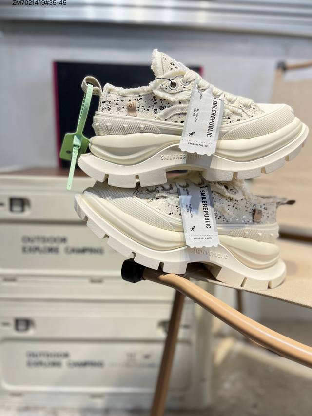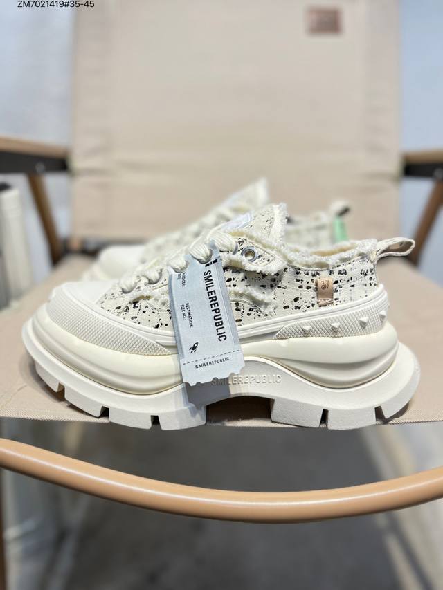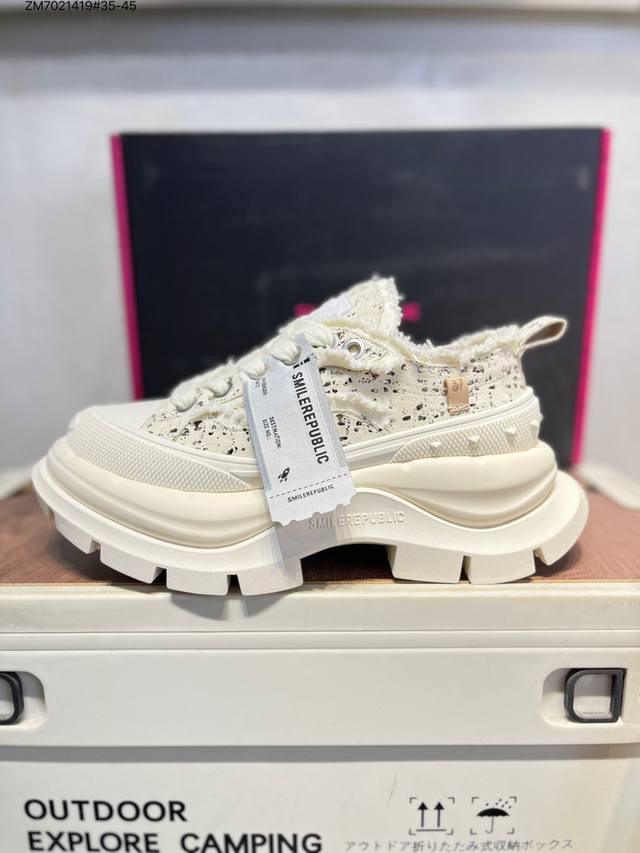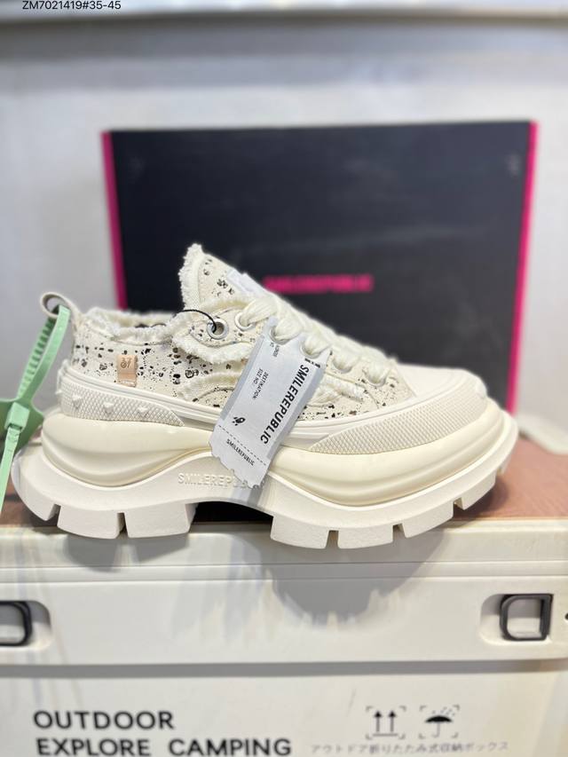 Smilerepublic Tan Jianci's Dad Shoes 2.0 series is here! Featuring a washed fabric TPU patch, a 7cm thick sole, and a lightweight yet height-enhancing design. #Smilerepublic3rdAnniversary #Smilequeen #SmileQueen2ndGeneration #ThickSoleShoes #HighKey #MyThickBeigeShoes Available in three colors: black, white, all black, and all white. The thick sole is so soft it feels like it has its own spring. The shoe shape makes the legs look particularly delicate. Paired with mid-calf socks, it instantly transforms you into a schoolgirl, making your legs look incredibly long! A popular item on Xiaohongshu (Little Red Book). Many celebrities, including Li Yunrui, Yu Wenwen, Dapeng, Piyou, Su Xing, and Liu Genghong, have been seen wearing them. Sr25Ss001 Zm7021419 #35-45 DDD