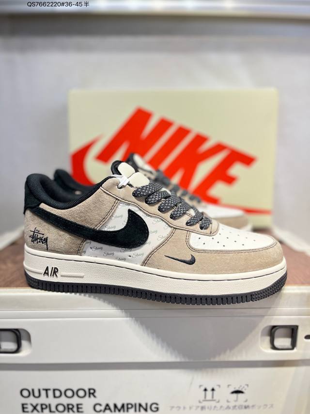 Stussy X Nk Air Force 1 '07 Low Low-top Casual Sneakers #Custom Leather, Original Last and Cardboard, Authentic Air Force Design, High Cleanliness, Built-in Full-length Air Cushion Xz6188 Qs7662 #36-45 Half