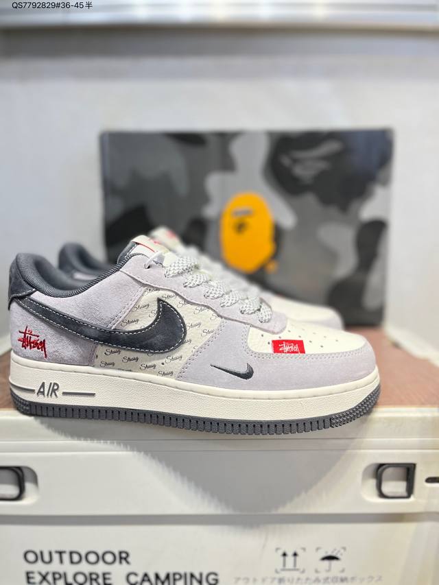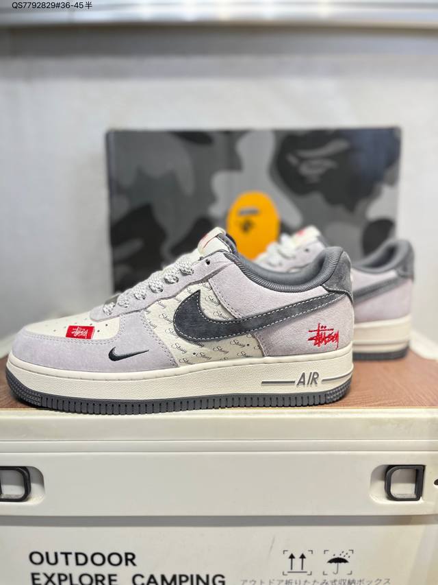 Stussy X Nk Air Force 1 '07 Low Low-top Casual Sneakers #Custom Leather, Original Last and Cardboard, Authentic Air Force Design, High Cleanliness, Built-in Full-length Air Cushion Xs1958 Qs7792829 #36-45 Half Size