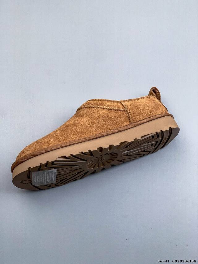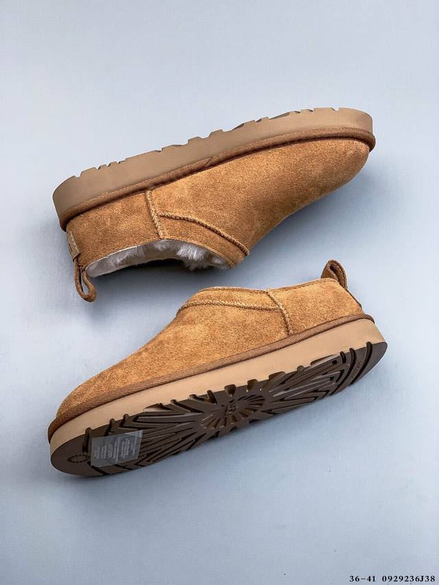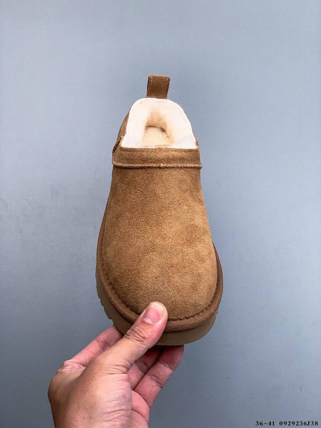 The top-of-the-line version, the new Uggclassicmicro, features a classic, ultra-mini design. This classic boot silhouette features a lower-cut design, making it easy to style both at home and out. Made in Guangzhou by a leading foreign trade manufacturer, this model features genuine sheepskin from toe to insole, individually packaged in a box, and comes with a waterproof chip. Unlike any other version on the market, this independently developed, original, cashmere outsole provides winter warmth, making it a great choice for both outings and at home. In recent years, Ugg has introduced a series of styles tailored to the preferences of younger consumers, placing it at the forefront of fashion trends. The shoe's upper is made of water-repellent suede with a 17mm Uggpure implanted wool insole, offering lightweight, non-slip comfort. The rubber outsole features the brand's logo and comes with full packaging.
