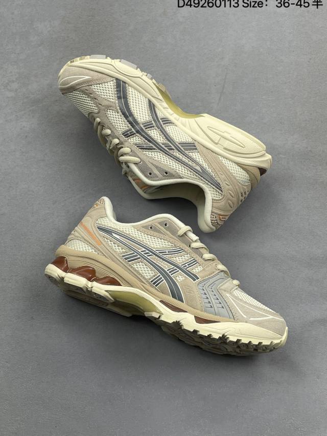 This is a factory-grade Asics Gel-Kayano 14 outdoor trail running shoe featuring a breathable mesh upper with some synthetic leather sections, made with the new Ahar+ rubber material for enhanced durability. It's from the Japanese professional running shoe brand Asics. Product Code: 1A161-400 Size: As shown in the picture D49260113