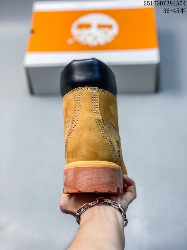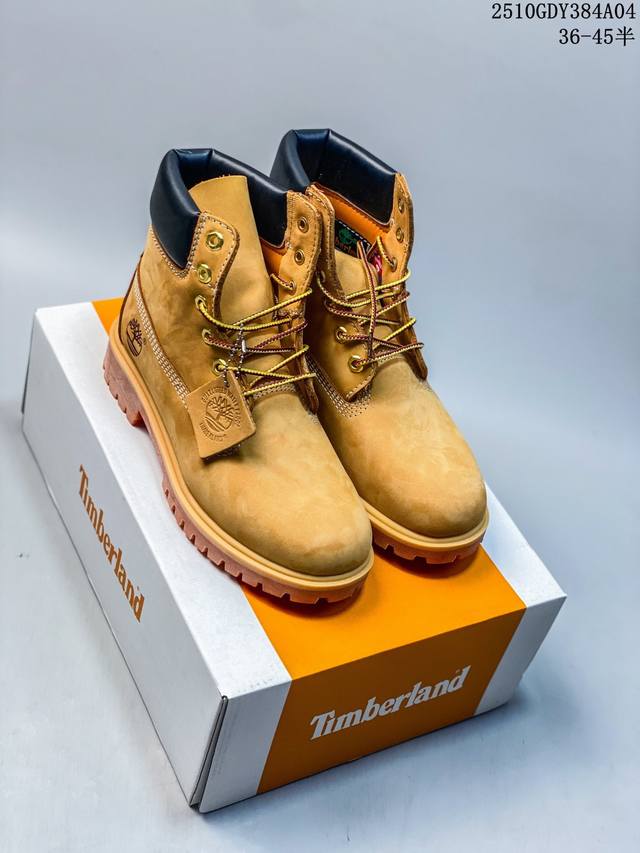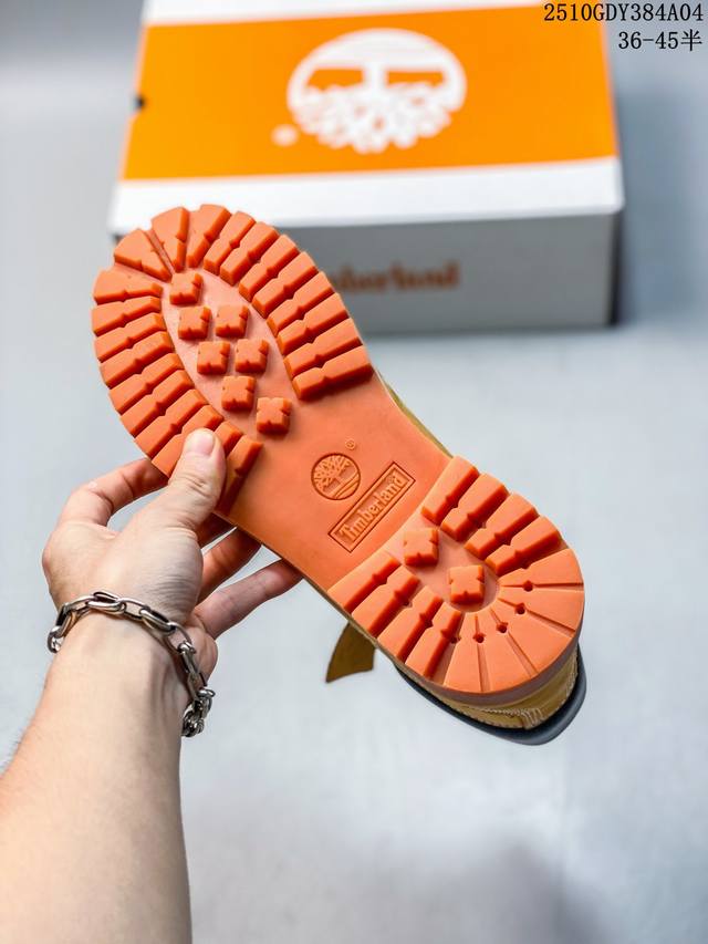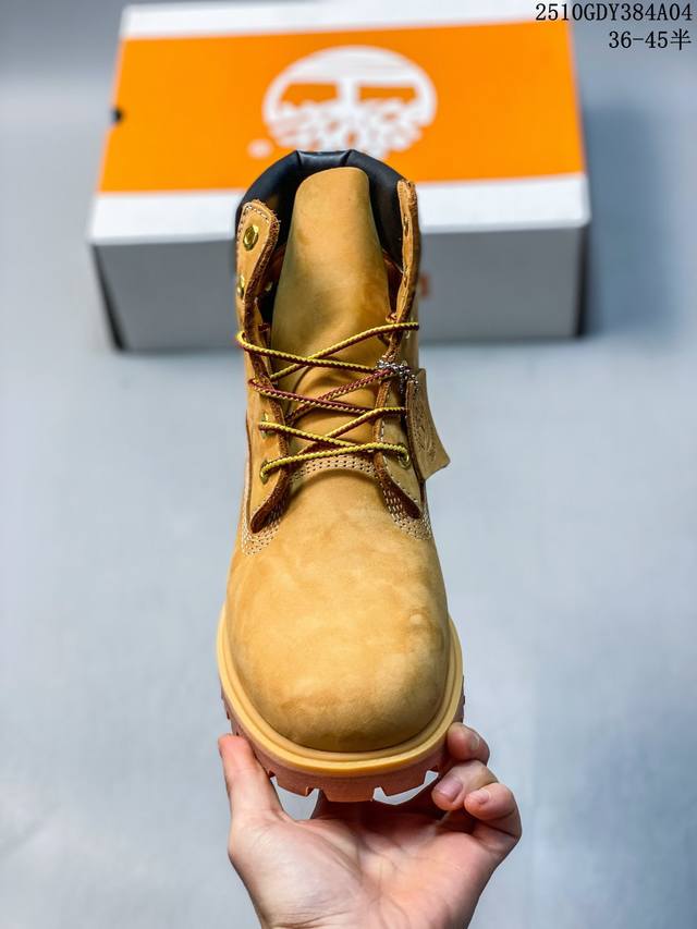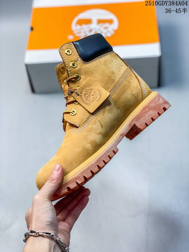 Timberland Classic High-Top Men's 7-hole Shoes Size 10061, Women's 6-hole Shoes Size 10361. Made in Zhongshan Baoyuan original channel, top-quality craftsmanship, newly upgraded, comparable to genuine products. Imported waterproof leather, original factory anti-counterfeiting label, UV scan compliant, computer stitching, four aligned lines, horizontal folds, dynamic water-repellent, top-quality genuine product, injection molding process, rubber anti-slip outsole, cold-resistant and crack-resistant, genuine leather collar, inner lining, insole equipped with anti-fatigue shock-absorbing honeycomb insole, extremely comfortable. Size: 35-45. 10Gdy384A04.
