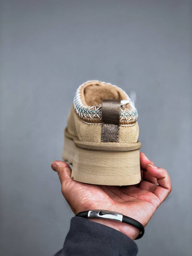 Uggtazz ethnic style thick-soled women's shoes, a popular item on Xiaohongshu. Manufactured by a large Guangzhou foreign trade factory, these shoes feature genuine sheepskin from toe to insole, individually packaged in a box with a waterproof chip, distinguishing them from any other version on the market. The 5cm thick sole is an original design with a cashmere insole, perfect for winter warmth, both for outings and home wear. In recent years, Ugg has launched a series of styles catering to younger consumers, moving to the forefront of fashion trends. The upper is made of water-repellent coated suede, 17mm thick Uggpure embedded wool insole, lightweight, non-slip, and comfortable rubber outsole with brand logo and complete packaging. Sizes: 35-40.