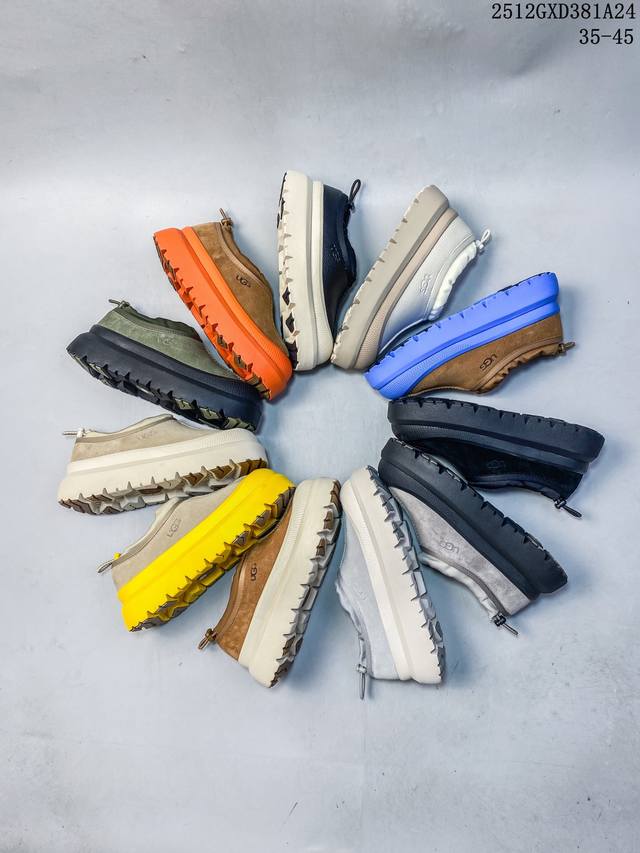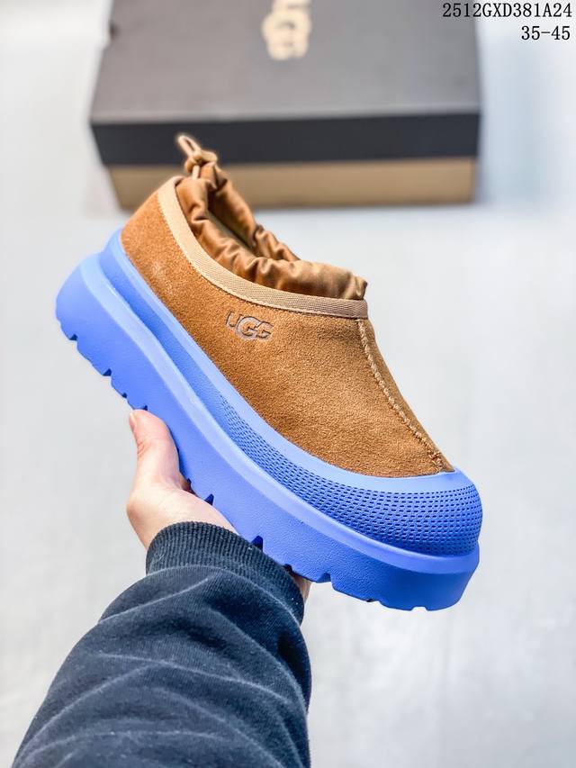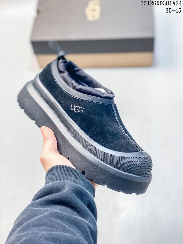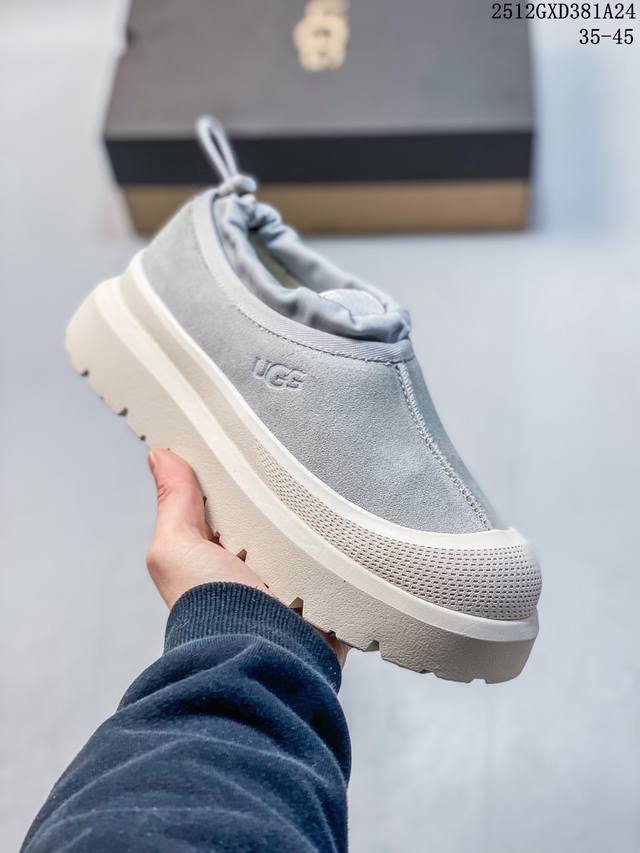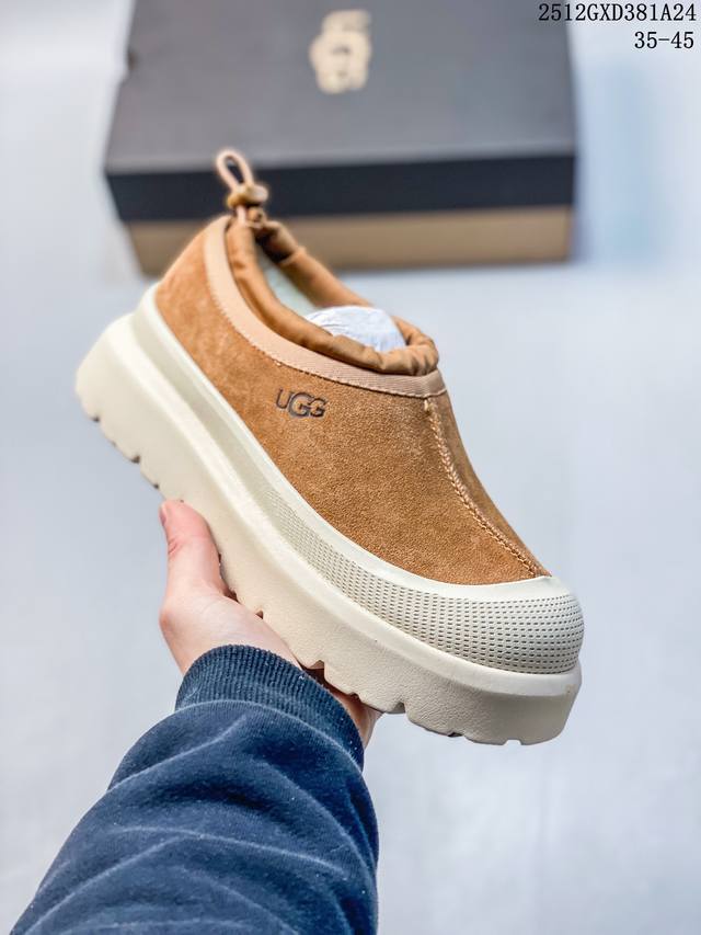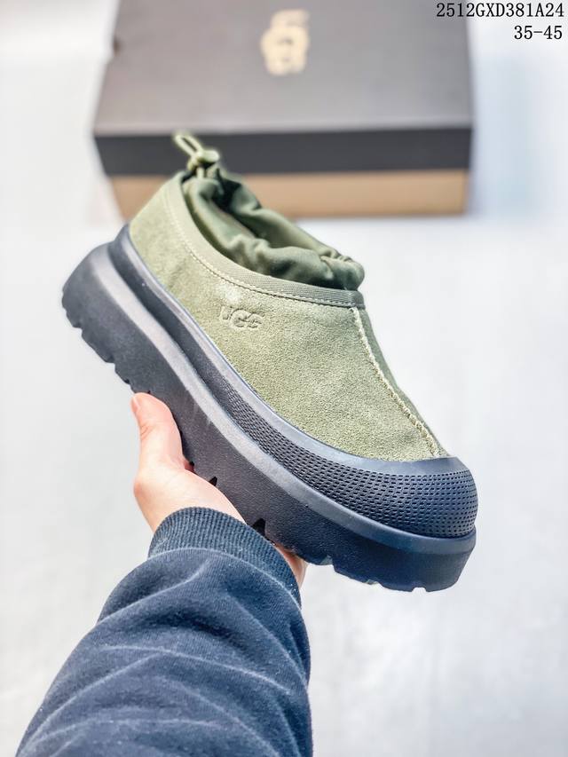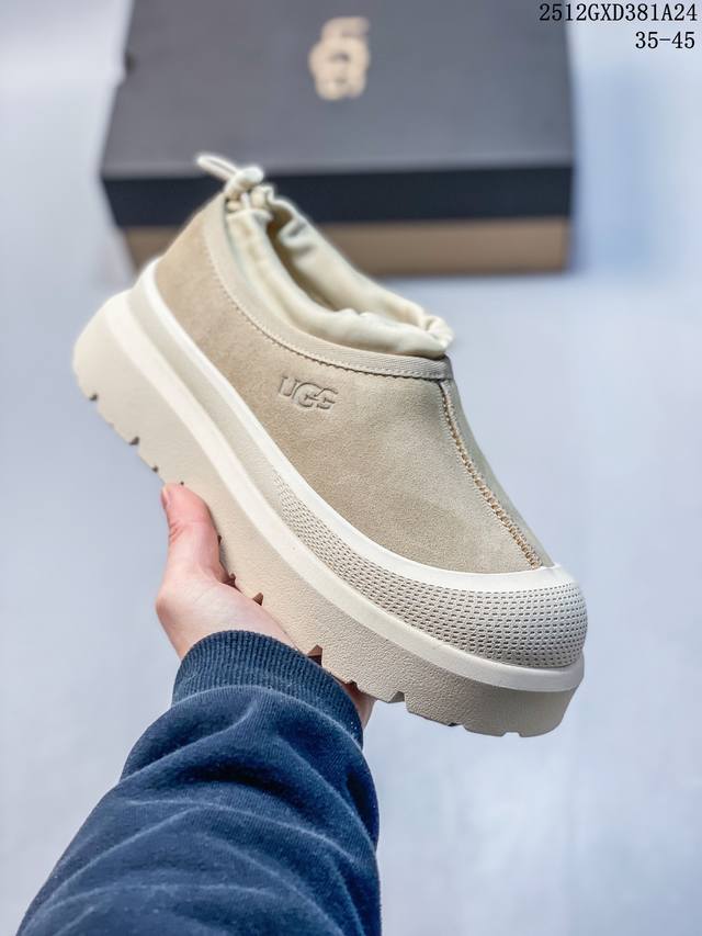 Top-tier waterproof version of Ugg "Tasman Low-top" (same style as Wang Yibo), 4cm thick sole, popular on Xiaohongshu. Produced by a large Guangzhou foreign trade factory. Genuine sheepskin from toe to insole, independent outer box packaging, chip with waterproof technology, distinguishing it from any other version on the market. 4cm thick sole, independently developed original design, cashmere outsole, suitable for winter warmth, both for outings and home wear. In recent years, Ugg has launched a series of styles that cater to younger consumers, moving to the forefront of fashion trends. Shoe material: water-repellent coating, suede upper, 17mm Uggpure embedded wool insole, lightweight, non-slip, comfortable rubber outsole with brand logo, complete packaging. Sizes: 3 5 36 37 38 39 40 41 42 43 44 45. (Note: The last part, "12Gxd381A24," appears to be an unrelated product label and is omitted from the translation.)
