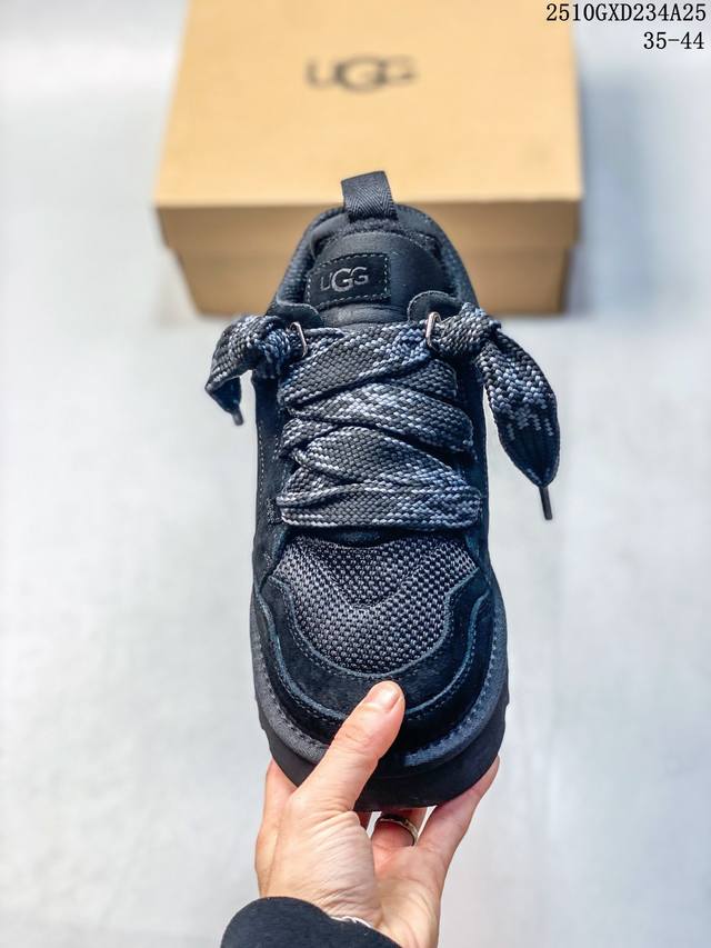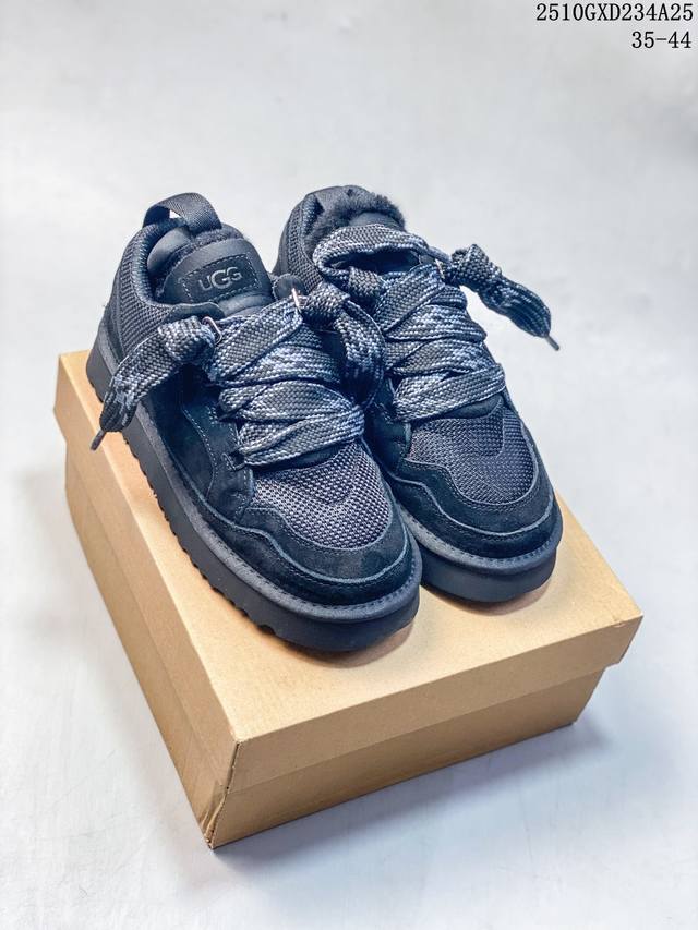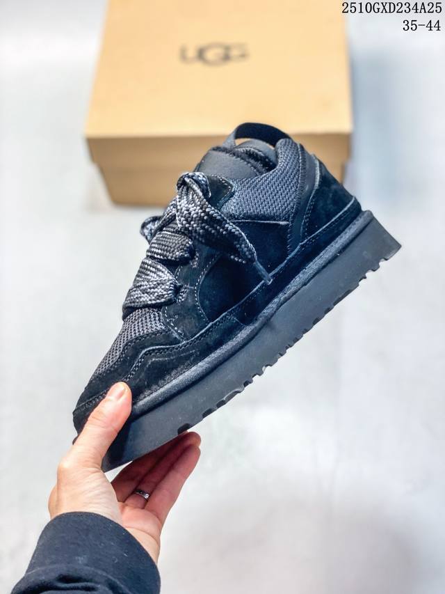 Ugg Autumn Men's and Women's Comfortable Flat Round Toe Two-Tone Lace-Up Fashionable Low-Top Casual Shoes Celebrity Style 1144032