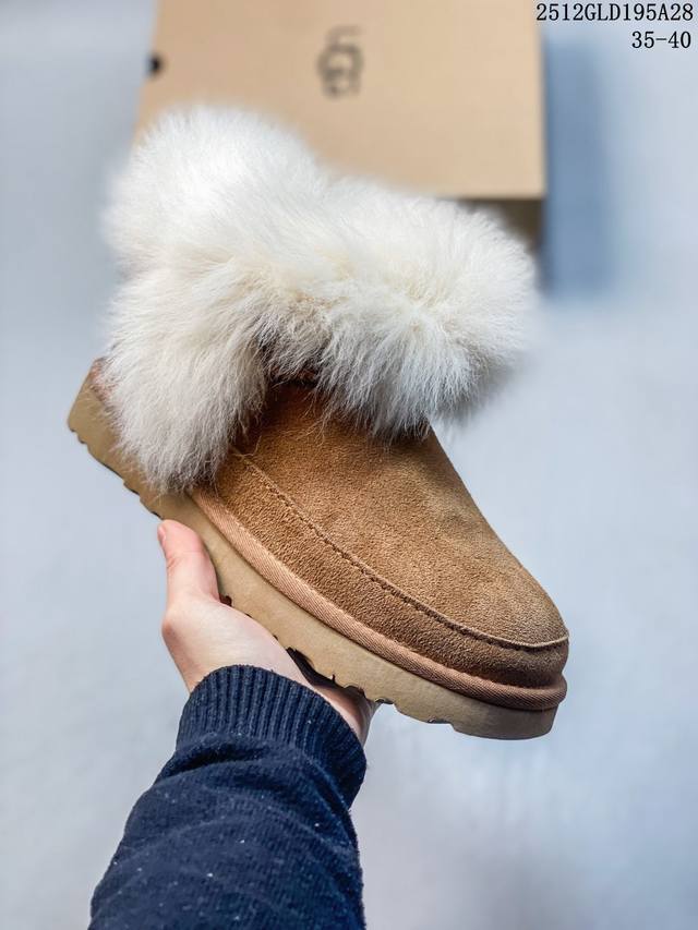 Ugg Autumn Women's Comfortable Thick-Soled Slip-On Casual Loafers, Slip-On Furry Shoes, Celebrity Style, Tazzelle Slip-On Shoes, Series: Slipper Evolution, New Generation Series, Product Name: Tazzelle Slip-On Shoes, Upper Material: Suede Cowhide, Lining: Sheepskin, Sole: Eva Foam, Code: Size: 35