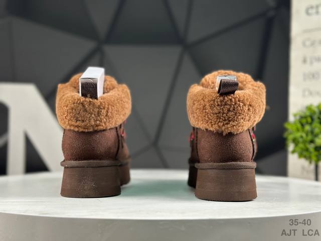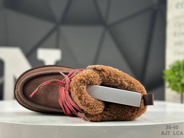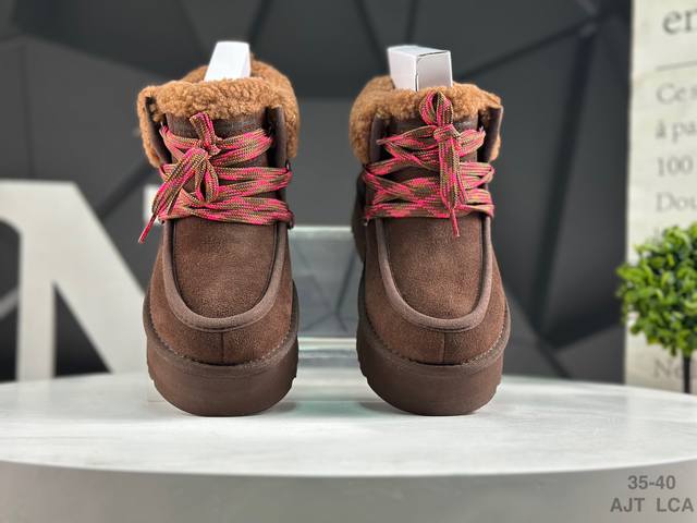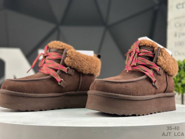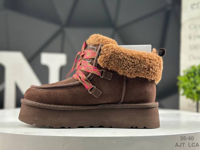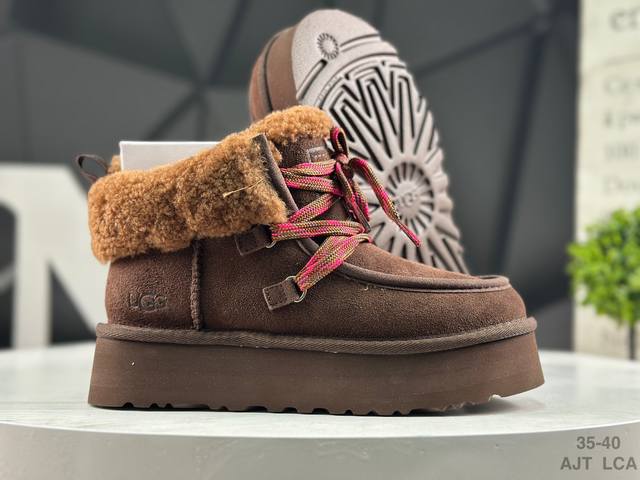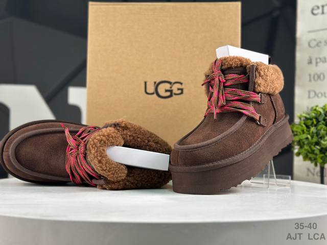 Ugg Classic Mini II Fuka Lace-up Classic Platform Mini Ankle Boots, Chestnut Color # Made with TPU molded suede upper, inlaid with faux curly wool fleece lining and insole for warmth and heat retention. 5.08cm thick Treadlite lightweight outsole. Item Number: 1143954 Sizes: 35 36 37 38 39 40 Ajt Lca