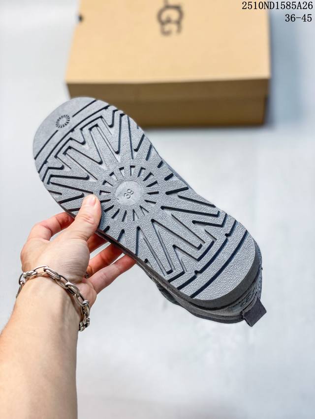 Ugg snow boots, playful and cute with versatile styles. American luxury brand Ugg flat series winter snow boots, made of wool, warm and comfortable, with a fur-lined toe. Official packaging and inspection label. Made with original factory stain-resistant and waterproof leather, non-slip and wear-resistant, lightweight outsole. Trendy and versatile British style comfortable slippers, perfect for autumn and winter casual wear. Thick sole, excellent warmth, a must-have for cold weather. Sizes: 35 36 37 38 39 40. Code: 10Nd1585A26