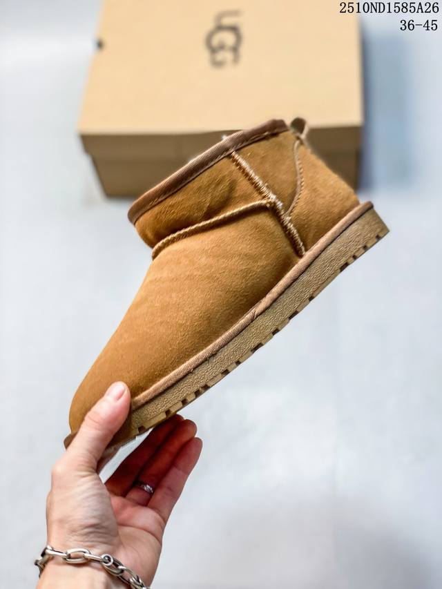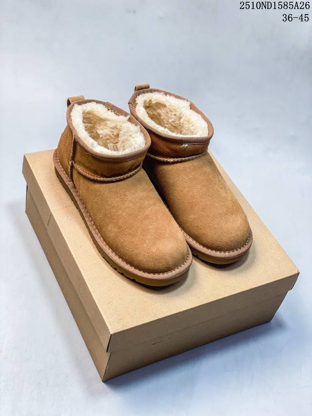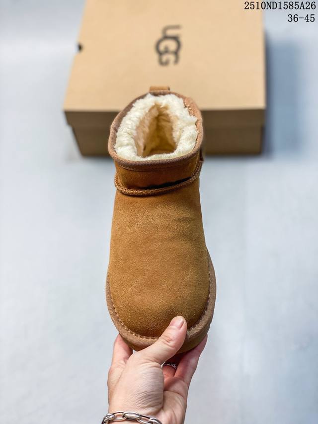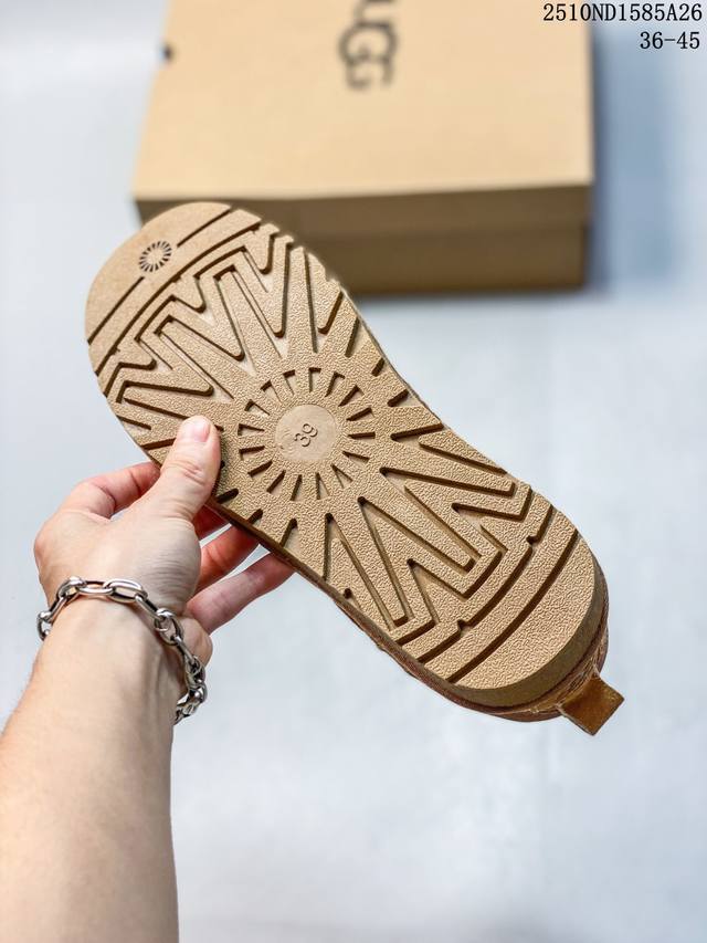 Ugg snow boots, playful and cute with versatile styles. American luxury brand Ugg flat series winter snow boots, made of wool, warm and comfortable, with a fur-lined toe. Official packaging and inspection label. Made with original factory stain-resistant and waterproof leather, non-slip and wear-resistant, lightweight outsole. Trendy and versatile British style comfortable slippers, perfect for autumn and winter casual wear. Thick sole, excellent warmth, a must-have for cold weather. Sizes: 35 36 37 38 39 40. Code: 10Nd1585A26