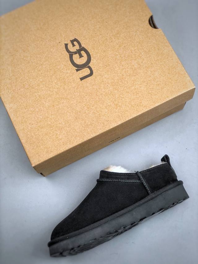 's original development features a cashmere outsole and insole for winter warmth, perfect for both outdoor and home use. In recent years, Ugg has introduced a series of styles tailored to the preferences of younger consumers, placing them at the forefront of fashion trends. The shoe's upper is made of water-repellent suede with a 17mm Uggpure implanted wool insole for a lightweight, non-slip, and comfortable fit. The rubber outsole features the brand's logo and comes with full packaging. Sizes: 35-40. D DD