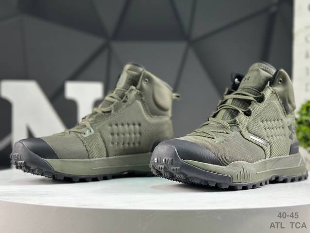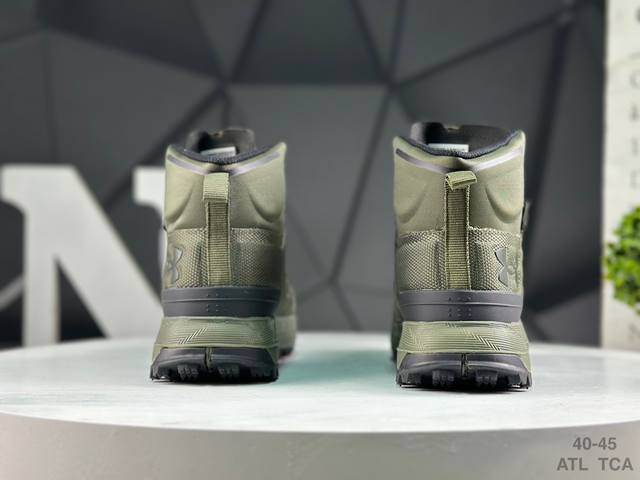 Under Armour Cy high-top hiking shoes feature a mesh knit synthetic leather upper with TPU inserts, and an innovative Ua Flow cushioning outsole. Sizes: 40-45.