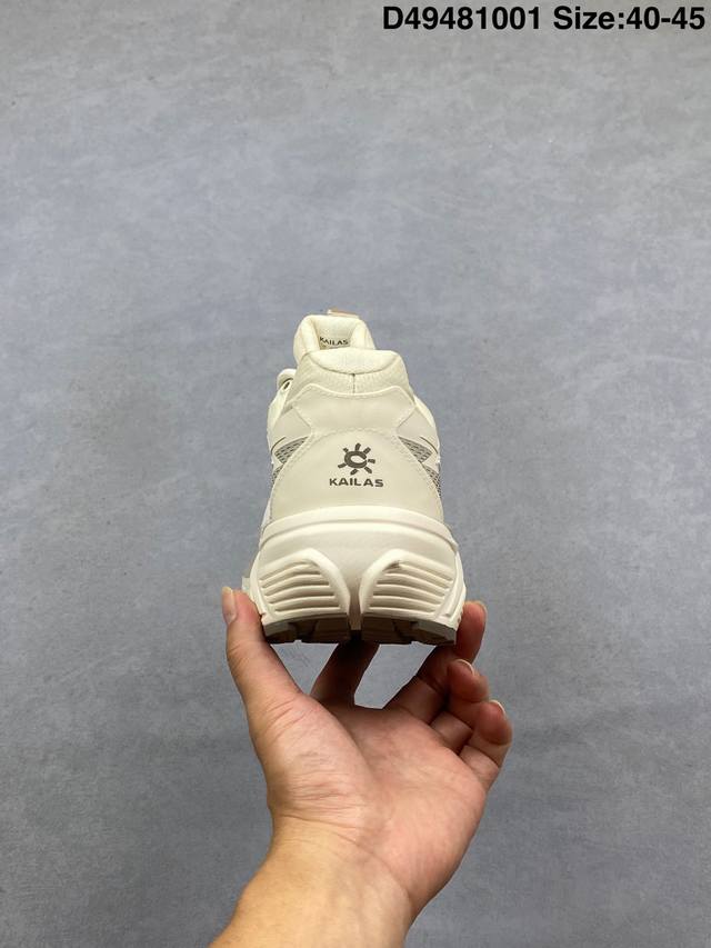 Upgraded original last and paper version development pattern, using Xdimesh multi-dimensional mesh fabric, equipped with shock absorption technology, high-density EVA midsole, and anti-slip and wear-resistant Rb rubber outsole. Kailas Fuga Du, one of the world's three major full-line climbing brands, low-top hiking, outdoor leisure sports running shoes from the Big Slope King competitive series. Type: Men's Shoes. Sizes: 40 41 42 43 44 45. Code: D49481001.