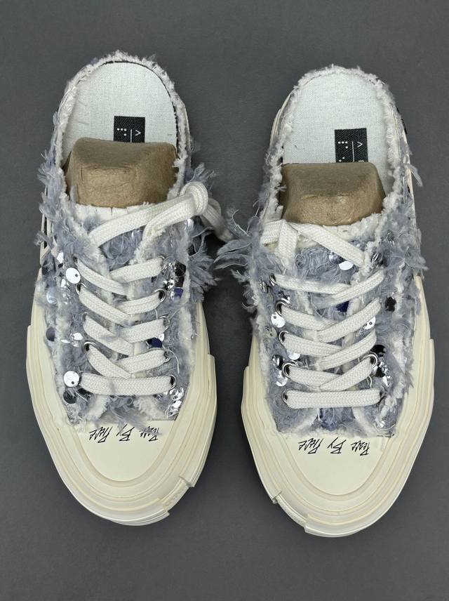 Original 1:1 Developed Long-Pile Plush Sequined Half-Slip Low-Top Gray