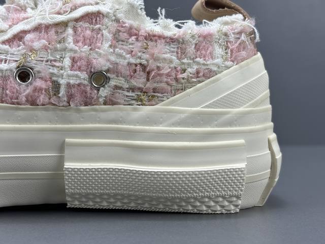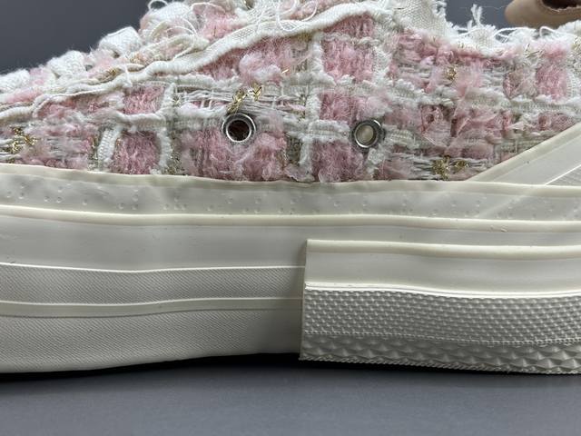 Tweed Non-slip Wear-resistant Low-top Canvas Shoes, White/Pink, Women's Sizes 35-39