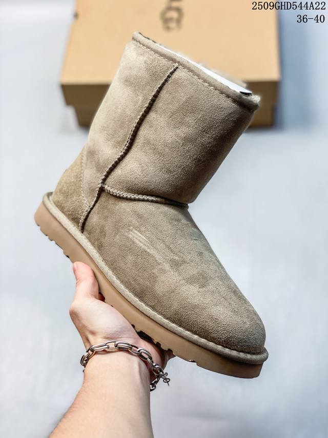 independently developed the original outsole with cashmere insole, which is a great choice for winter warmth both outdoors and at home. In recent years, Ugg has launched a series of styles that partially favor the preferences of younger consumers and are at the forefront of fashion trends. The shoe body is made of water-repellent suede with a 17mm Uggpure implanted wool insole for lightweight, non-slip and comfortable comfort. The rubber outsole has the brand logo and comes with a full set of packaging.