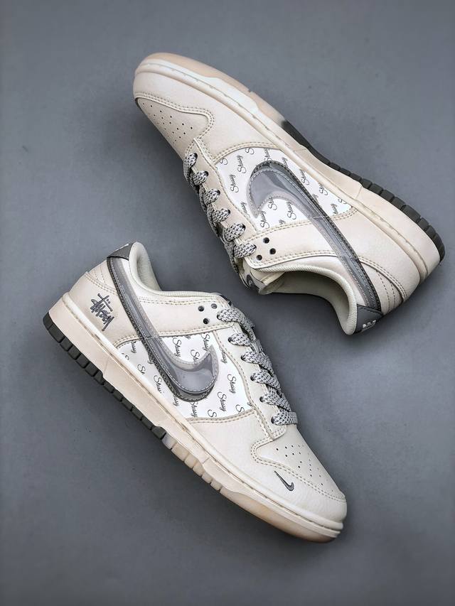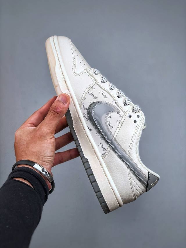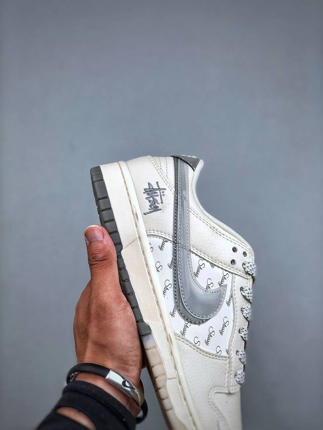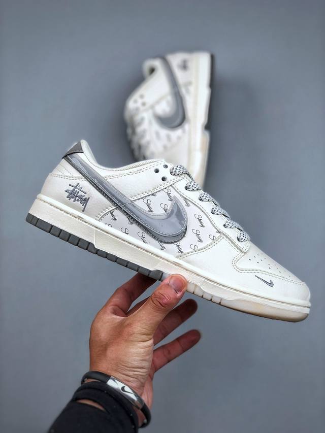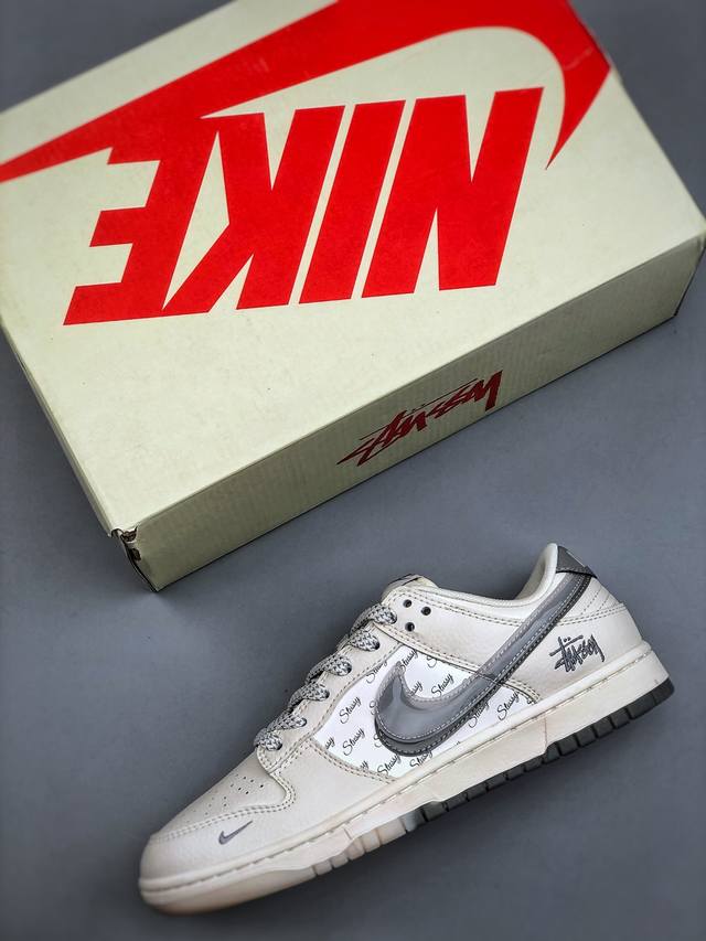 Welfare special price P version Nk Sb Dunk Low Stussy joint - white and gray double hook anniversary high-end custom low-top casual sneakers Xx2025-206 #Custom shoe box, pure original quality shipment from a large factory, ultra-high cleanliness, clean leather cutting without any burrs, perfect details, size: 36-45 half