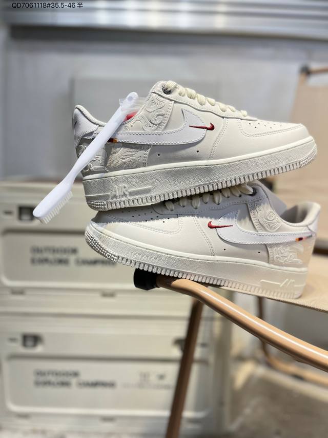 Year of the Horse Limited Edition# Nk Air Force 1 '07 Low Low-top Casual Sneakers# Custom Leather, Original Last and Cardboard, Authentic Air Force Design, High Cleanliness, Built-in Full-length Air Cushion Iq1119 Qd7061118# Sizes 35.5-46 (Half-DDD)