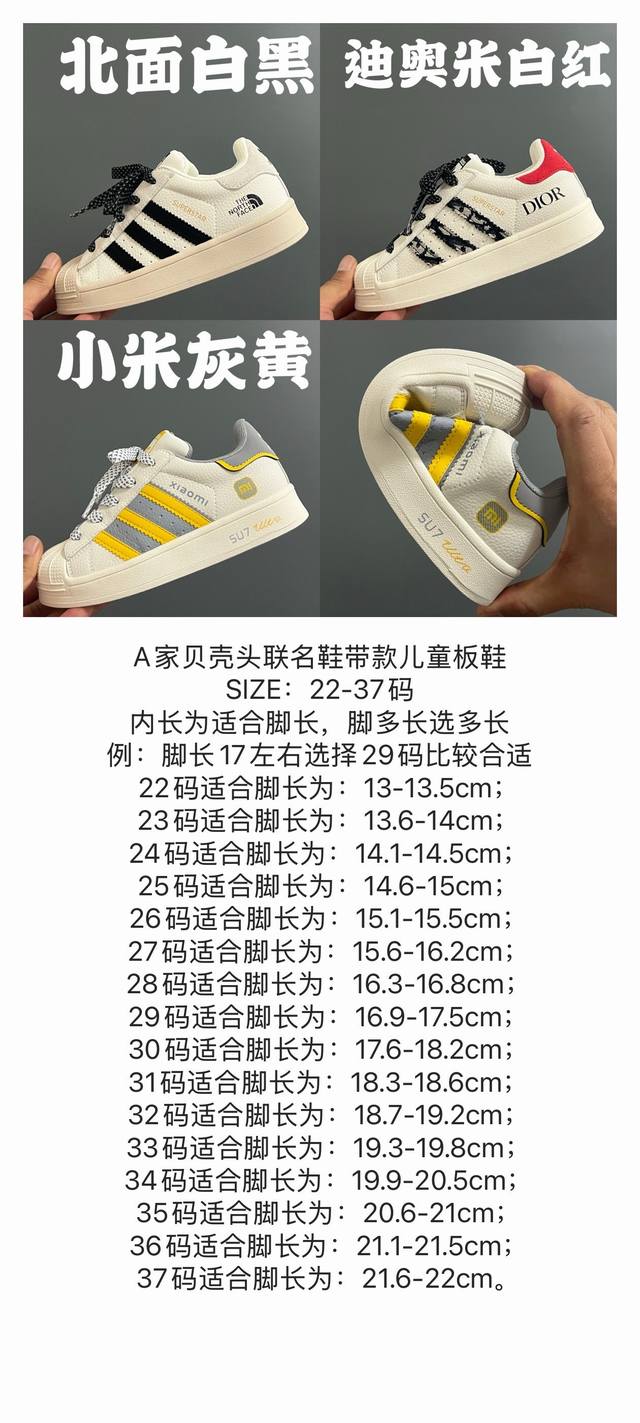 Agent Price DDD Adidas Superstar Shell Toe Collaboration Shoelace Kids' Sneakers DDD Size: 22-37, Size Chart DDD The collaboration series is so stylish! DDD High-quality leather upper, full of texture DDD Exquisite shell toe, protecting delicate ankles DDD Original wear-resistant and non-slip outsole, meeting daily needs DDD
