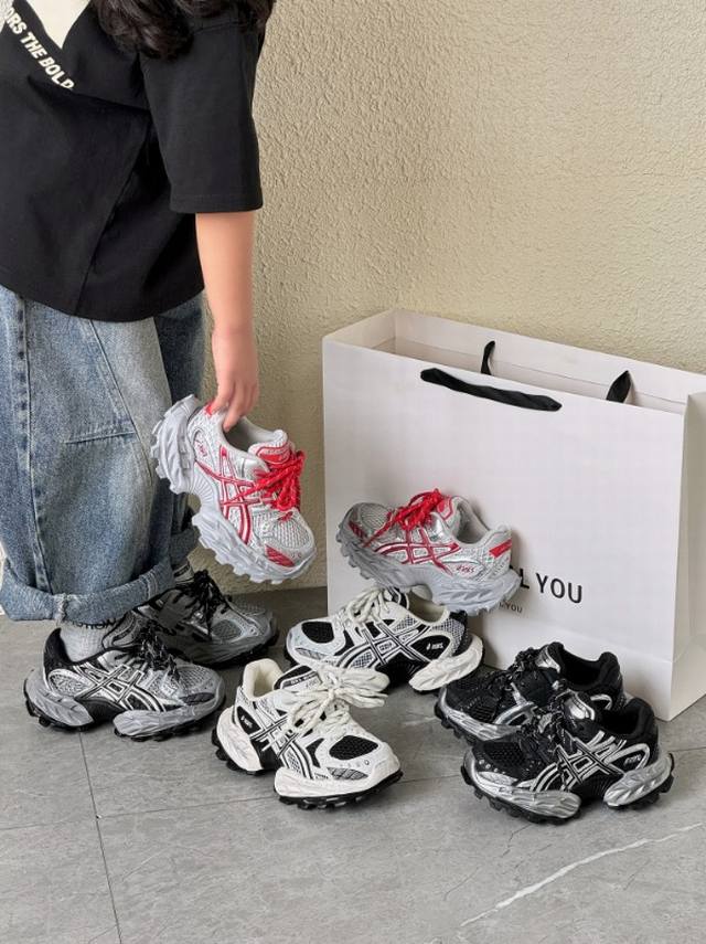 Asics Kids' Chunky Shoes, Thick-Soled Outdoor Off-Road Casual Sports Running Shoes. #Breathable Mesh Upper with Synthetic Leather Material# Made with new Ahar+ rubber material, sizes 26-37. Breathable upper for comfort and breathability. Durable, non-slip, and lightweight outsole for a fantastic feel.