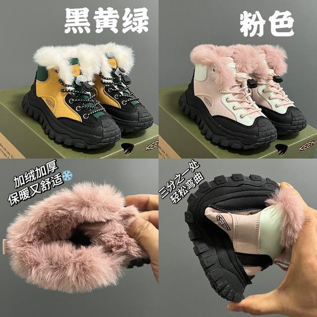 Fleece-Lined Keen High-Top Elastic Buckle Children's Snow Boots