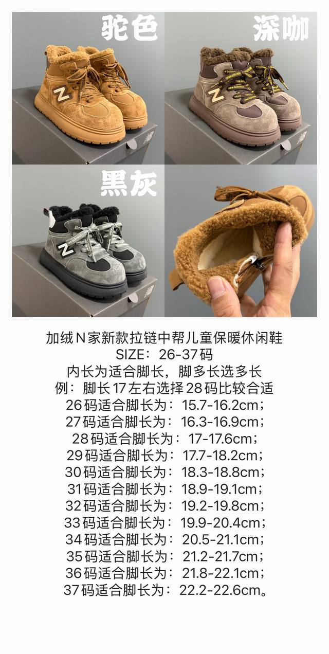 Fleece-lined NB Kapi Bala Zipper Mid-top Children's Warm Casual Shoes DDD Size: 26-37 DDD Super cute N mid-top style DDD Fleece-lined lining, warm and comfortable DDD Zipper design, easy to put on and take off DDD Rubber outsole, the feel is self-evident DDD