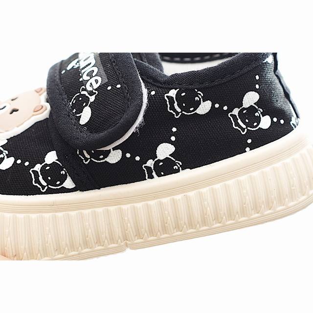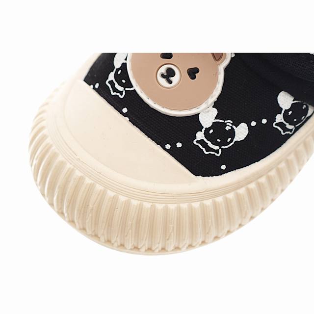 Nb Cute Canvas Bear Velcro Children's Shoes DDD Full-coverage toe protection and kick prevention, breaking free from foot shape constraints and unleashing your baby's active nature. The Velcro design makes them easy to put on and take off. The full opening is skin-friendly and won't rub against your feet. The sturdy heel cup fits snugly around the ankle, protecting your baby from injury while running and jumping. DDD Color: Black DDD Size: 18-29 DDD