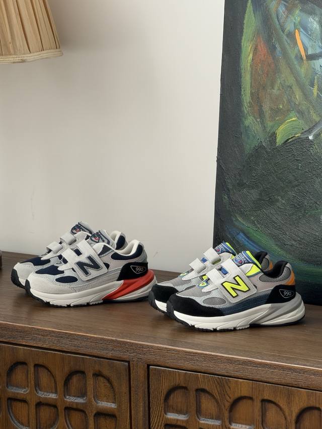 New Color DDD Hot Selling Nb990 V6 Pigskin Velcro Kids Shoes DDD New Century L 990 High-End Made in the USA Classic Retro Casual Sports Running Shoes. The upper is made of premium pigskin suede combined with mesh material, while retaining the double-layer padded collar, N logo on the side, leather heel patch and TPU heel design. It also features the signature Encap rubber outsole to ensure comfortable wear. Sizes 26-37 DDD