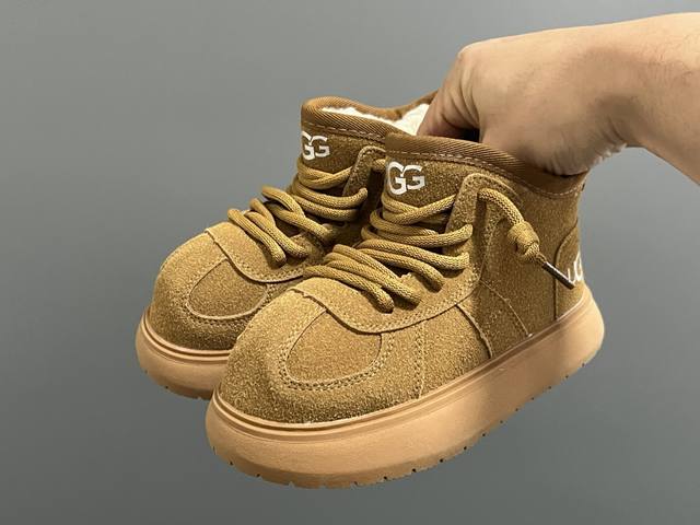 New U-brand Kapibala children's snow boots with large logo. Size: 26-38. Classic U-GG series. High-quality leather patchwork, full of texture. Fleece lining for warmth and comfort. Classic large logo, stylish and versatile.