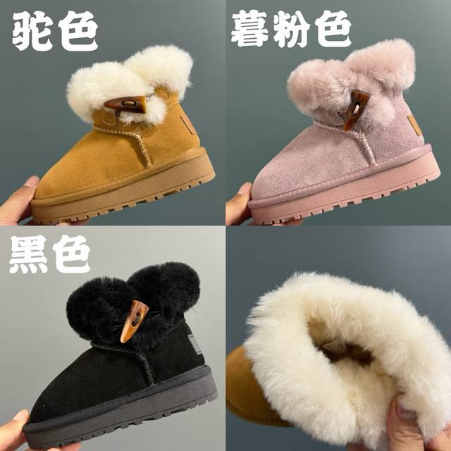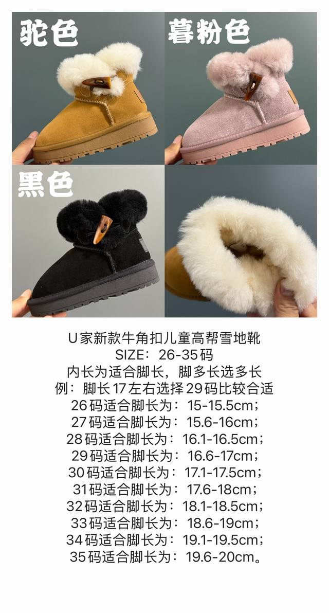 New Ugg Toggle Buckle High-Top Snow Boots for Kids Size: 26-35 Classic Ugg Toggle Buckle Style High-top design, thick fleece lining, warm and windproof Exquisite toggle buckle design, high-quality feel