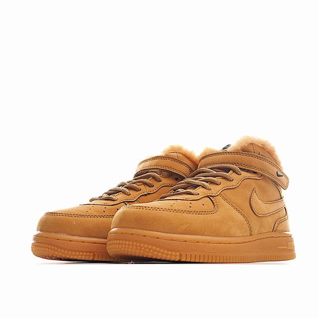 Nk Air Force 1 Mid High-Top Fleece-Lined Velcro Kids Shoes. These high-top fleece-lined children's athletic shoes are designed to keep feet comfortable and warm during the cold months, featuring fleece lining on their classic 2580 design. The combination of leather and synthetic materials creates a soft and smooth feel. Foam cushioning protects delicate feet, while an adjustable ankle strap provides a secure fit, allowing kids to play all day long. Product Code: 8200. Sizes: 26-37.5.