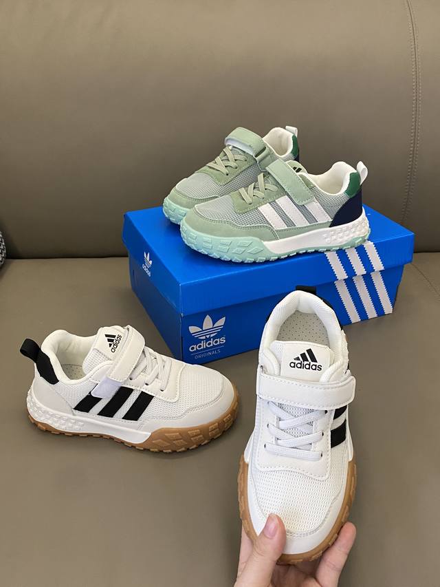 No returns or exchanges DDD Original image straight out of the box DDD Ad's new three-stripe Velcro mesh sneakers, which I've asked about countless times. The upper is made of breathable mesh material, comfortable and not stuffy, allowing your child's feet to breathe freely. The Velcro design makes it easy for children to put on and take off themselves, fostering their independence. The sole is made of non-slip and wear-resistant rubber material, safe and durable, allowing your child to run and play freely DDD