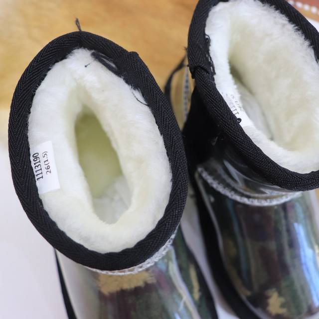 The outside is made of soft imported Lycra material, which will absolutely not crack. It's incredibly soft, and the inside is lamb's wool, giving it a very high-end look. The shoe lining is a blend of wool