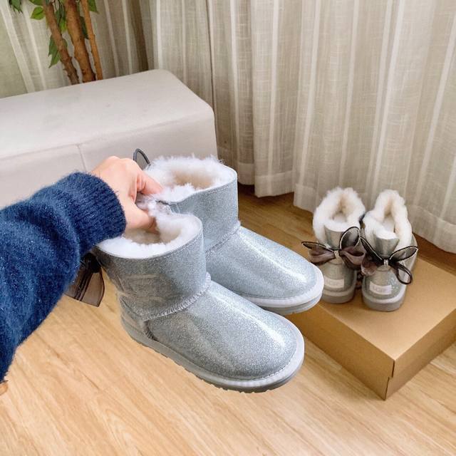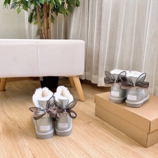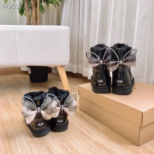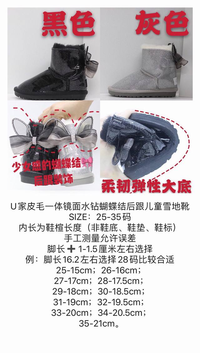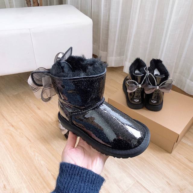 Ugg Bow-Tie Waterproof Patent Leather Wool-Lined Children's Snow Boots. Wool lining, mirrored exterior. Sizes 25