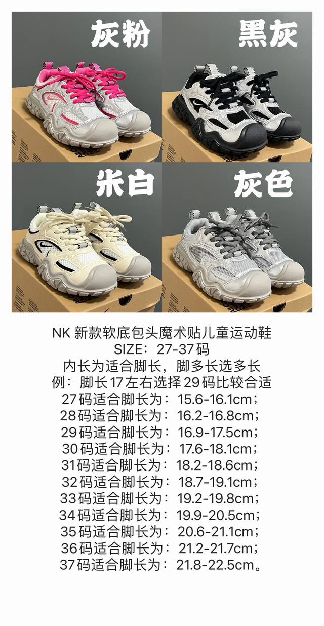 Returnable/Exchangeable DDD Nk New Soft-Soled Closed-Toe Velcro Children's Sports Shoes DDD Size: 27-37 DDD High-quality leather and mesh upper DDD Breathable and comfortable DDD Velcro design for easy on and off DDD Wear-resistant and non-slip rubber outsole for a great feel DDD