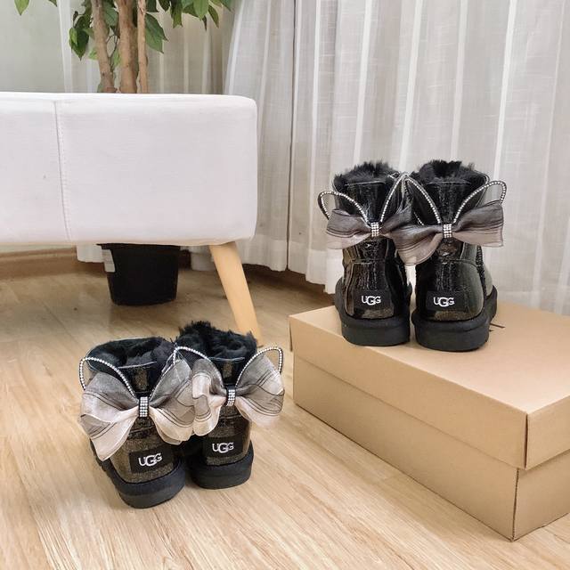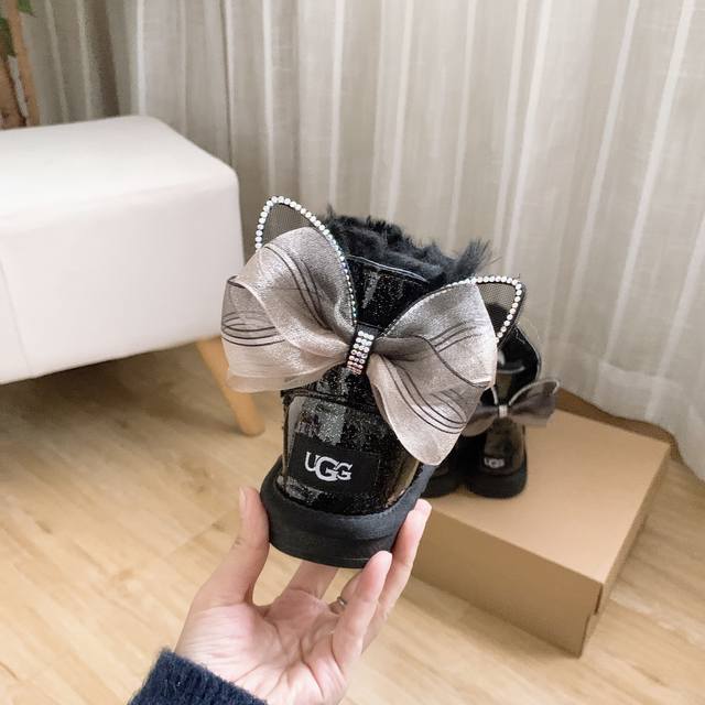 Ugg bow waterproof patent leather sheepskin integrated children's snow boots