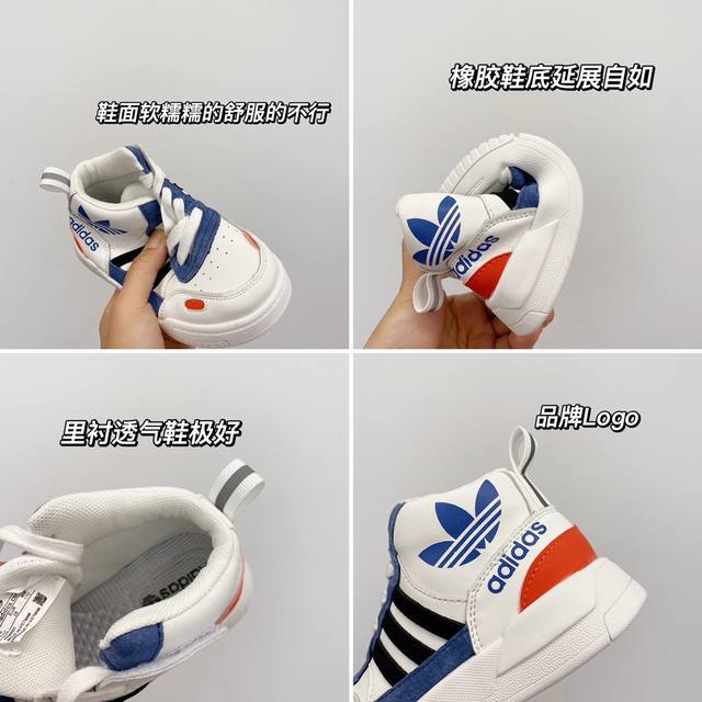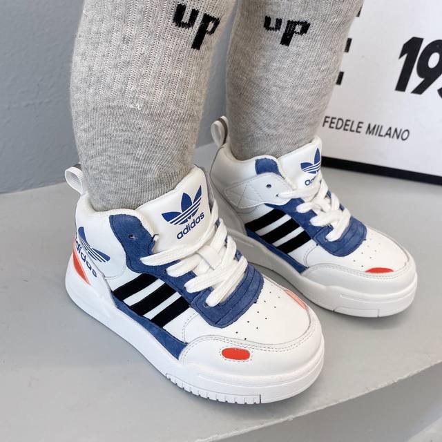 A child's foot length changes every 3 months. Taking an extra minute to choose the right size can save you a week of waiting time for size changes. Adidas high-top sneakers