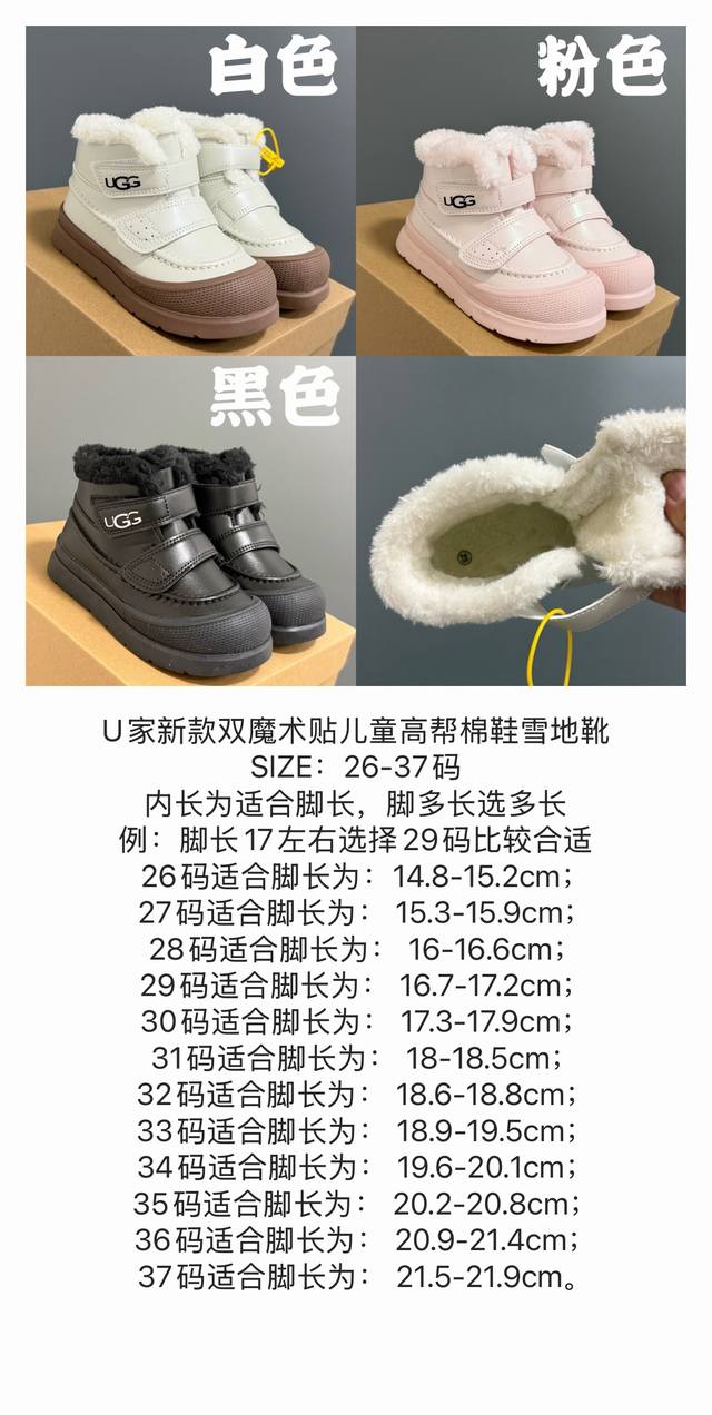 U Family New Double Velcro Children's High-Top Cotton Snow Boots Ddd Size: 26-37 Ddd Ugg Classic High-Top Style Ddd Thickened fleece lining for warmth and windproof Ddd Double Velcro design for easy on and off Ddd High-quality leather stitching for a premium feel Ddd